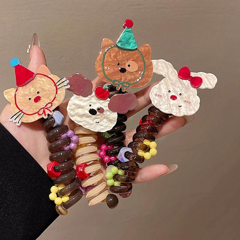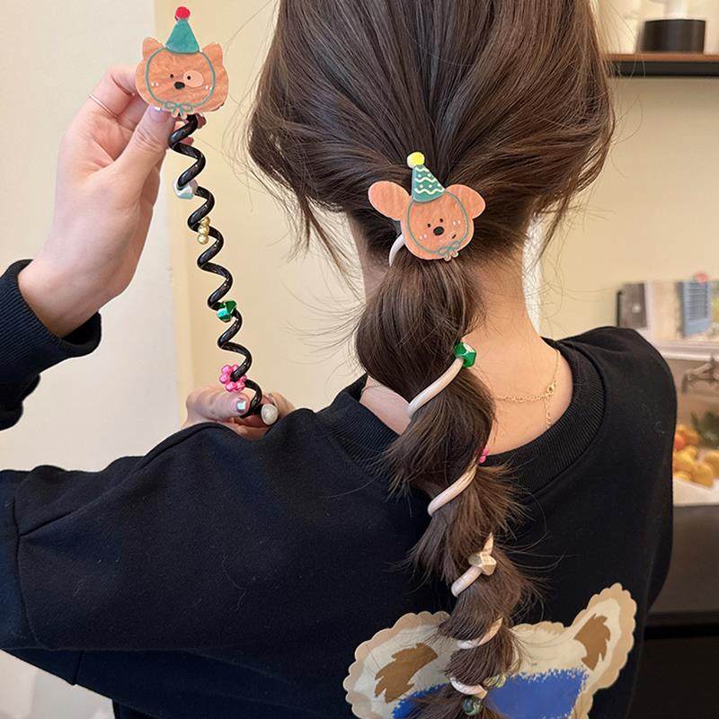 可爱电话线发圈头绳女2024新款高端网红泡泡辫编发神器