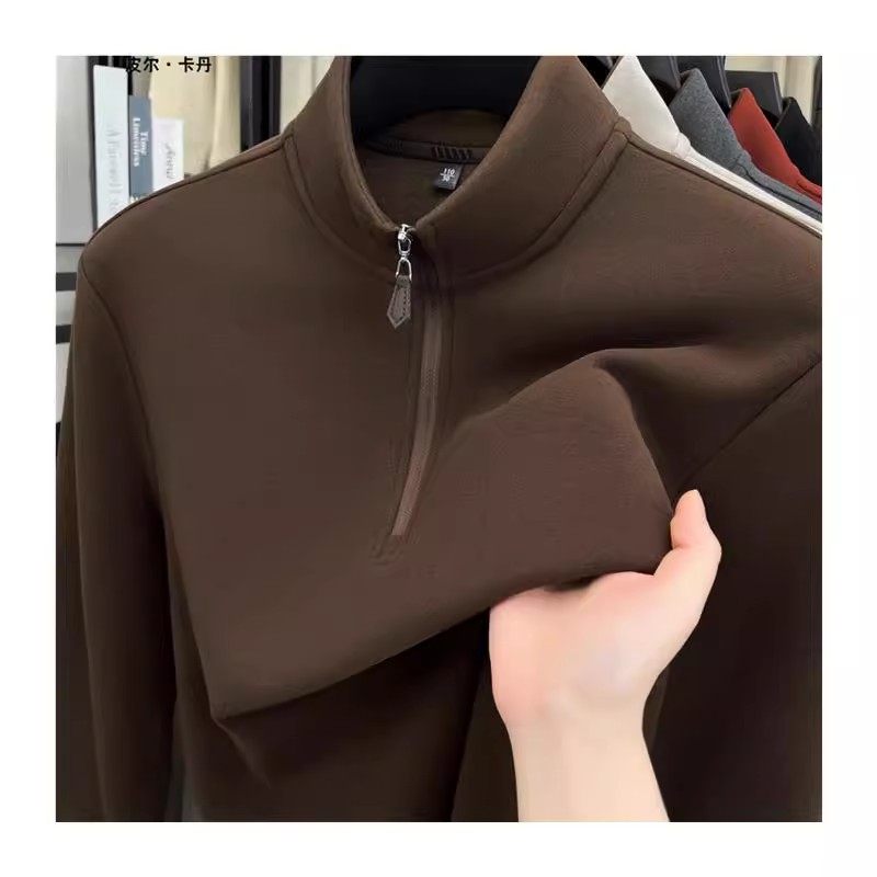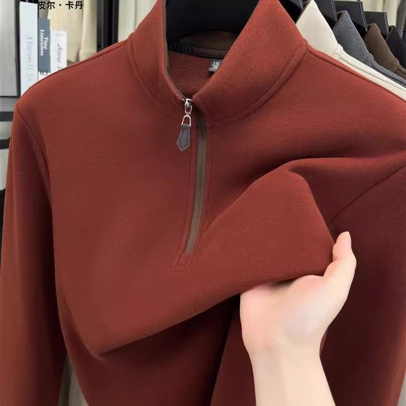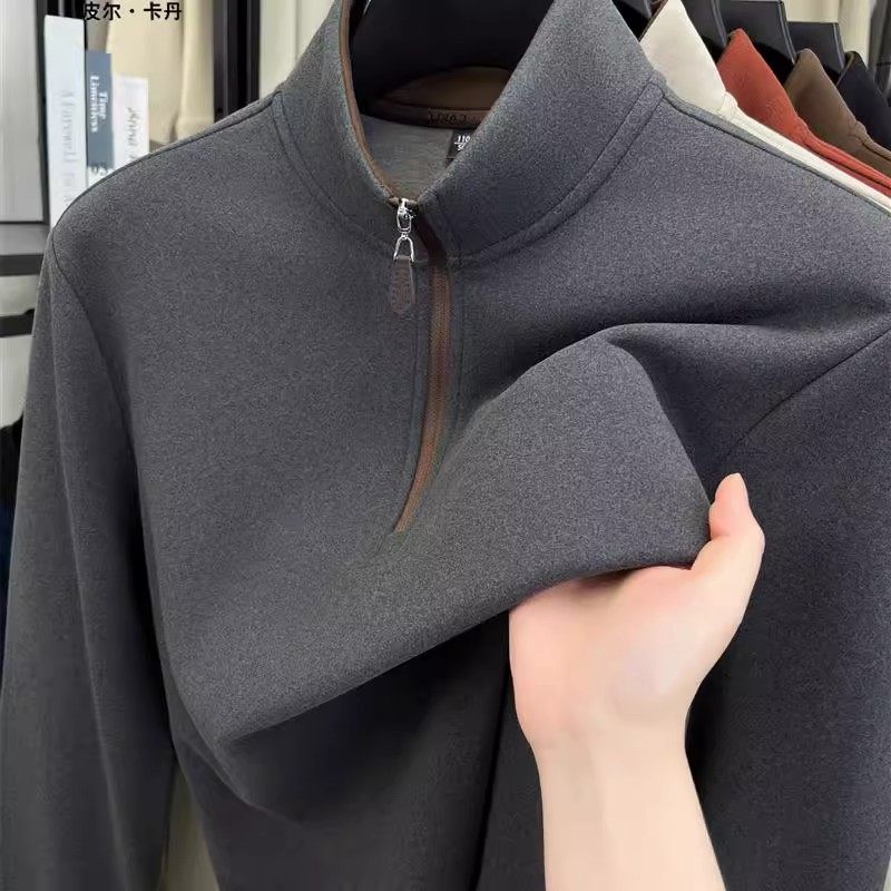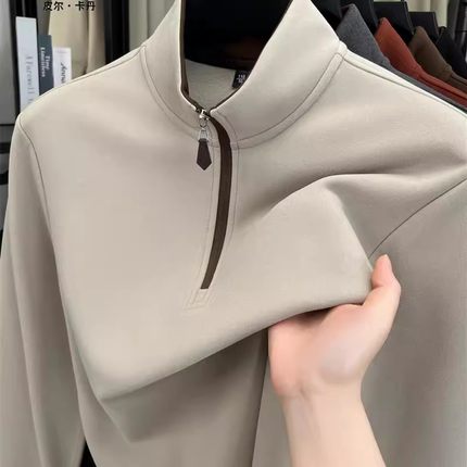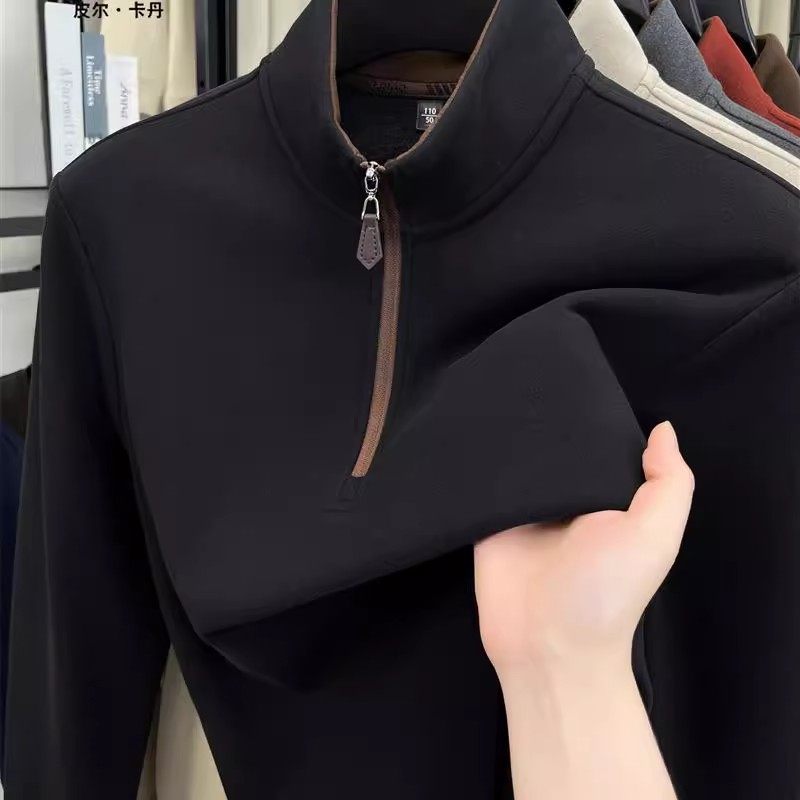 皮尔卡丹德绒男士卫衣长袖半拉链秋冬季高领2025新款T恤中年套头