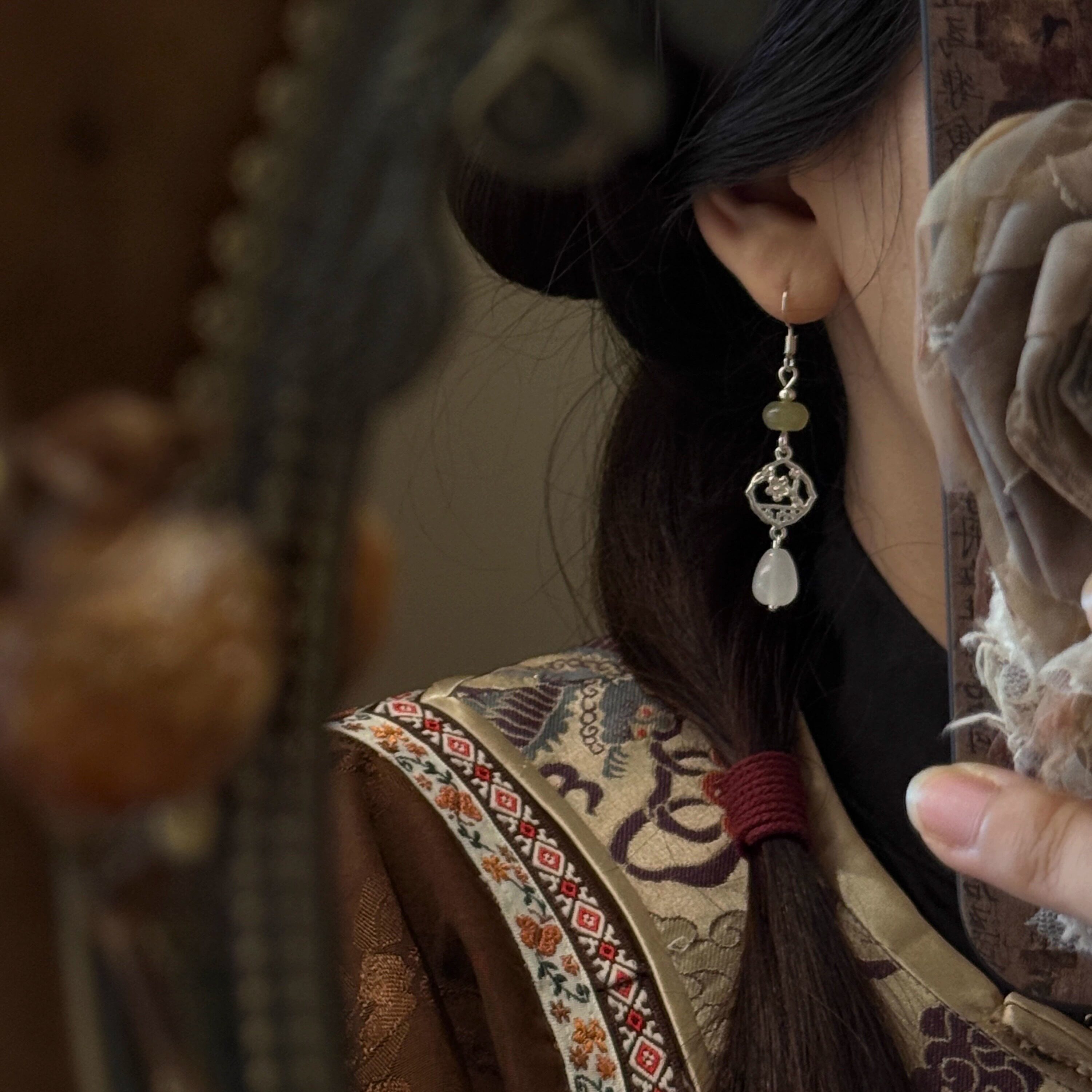 原创新中式耳环女复古国风长款流苏耳坠耳饰耳夹新款爆款S925耳钩