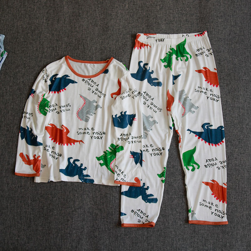 儿童家居服莫代尔宽松春夏薄款男童空调服九分长袖长裤睡衣中大童
