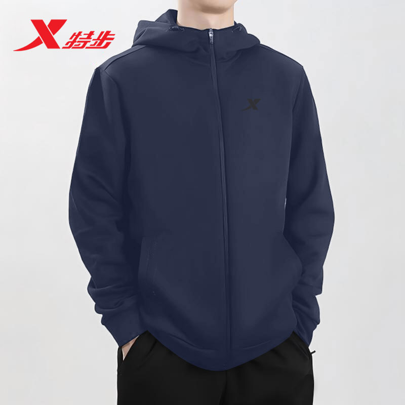 特步外套男装连帽春秋2025新款男款开衫卫衣夹克官方旗舰店运动服