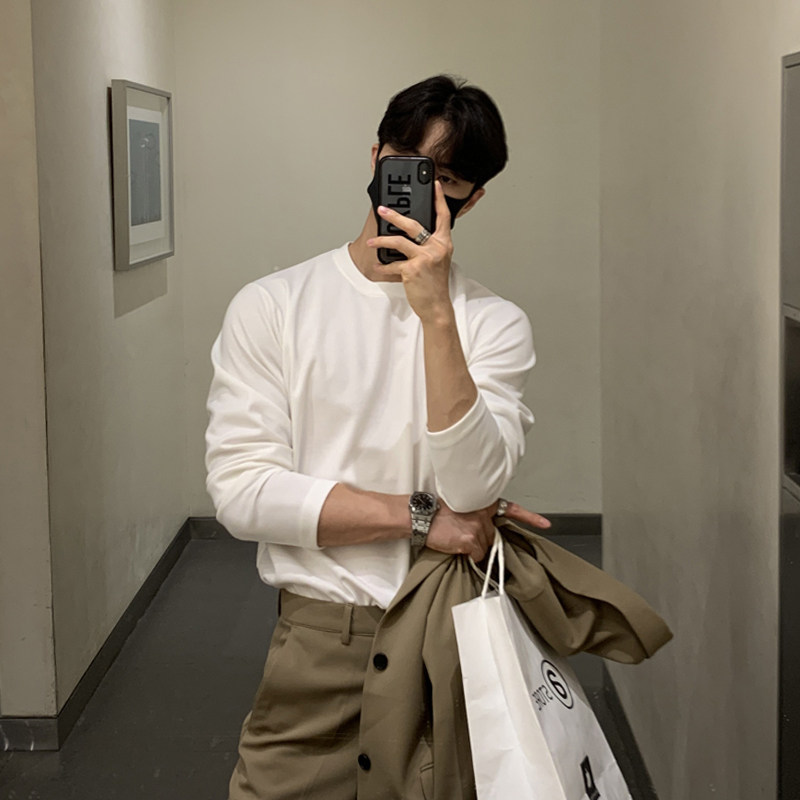 碧舍基础打底T恤男加绒长袖纯色短袖T恤圆领百搭棉恤打底衫上衣男