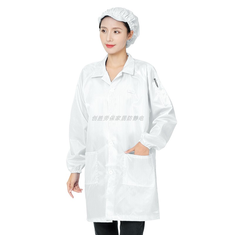 白色防静电条纹大褂电子食品工厂无尘车间工作服女长款防尘静电衣