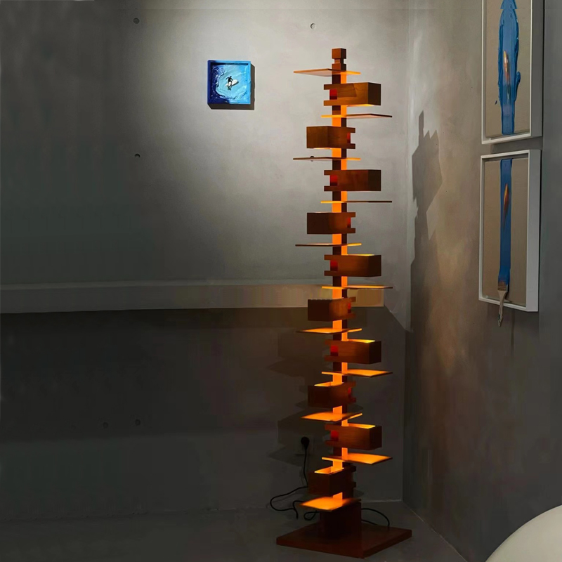 高山流水别墅落地灯日式建筑设计师样板房客厅别S墅艺术摆件胡桃