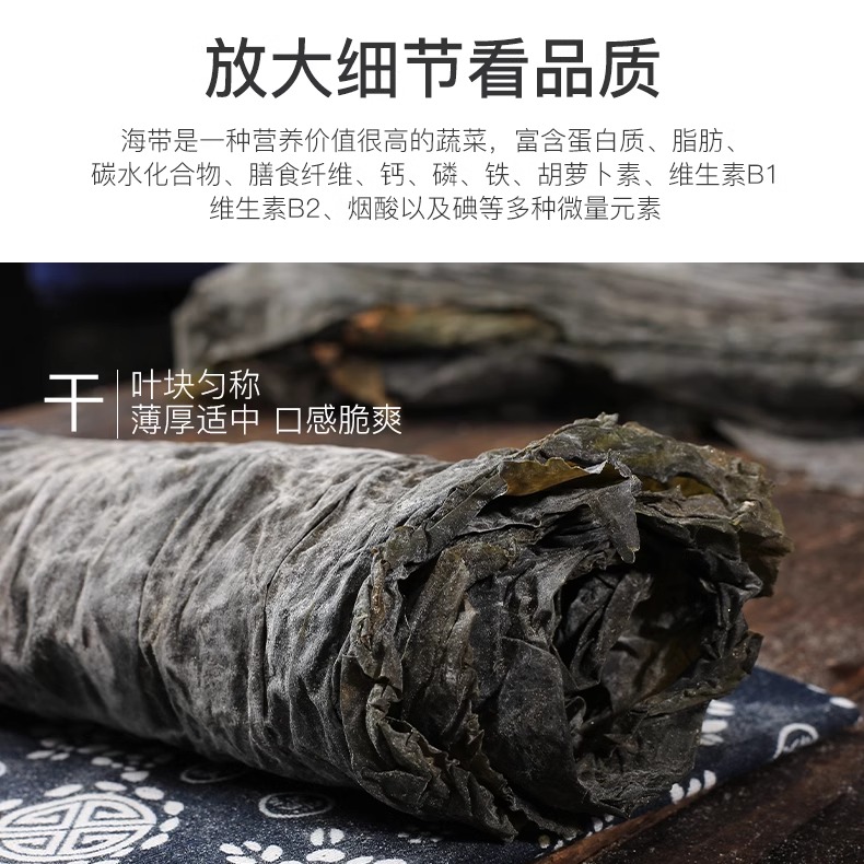 海带干货2斤厚整颗干海带昆布煲汤新鲜海带头丝片结荣成批发商用