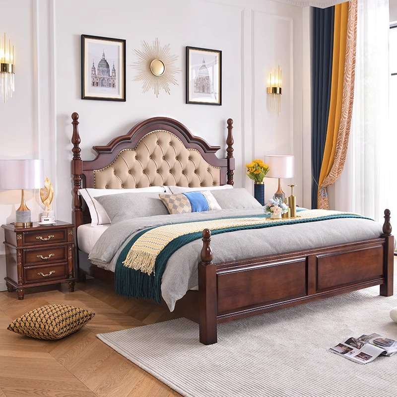 现代简约美式乡村风格轻奢复古柱子主卧室双人结婚软靠储物实木床