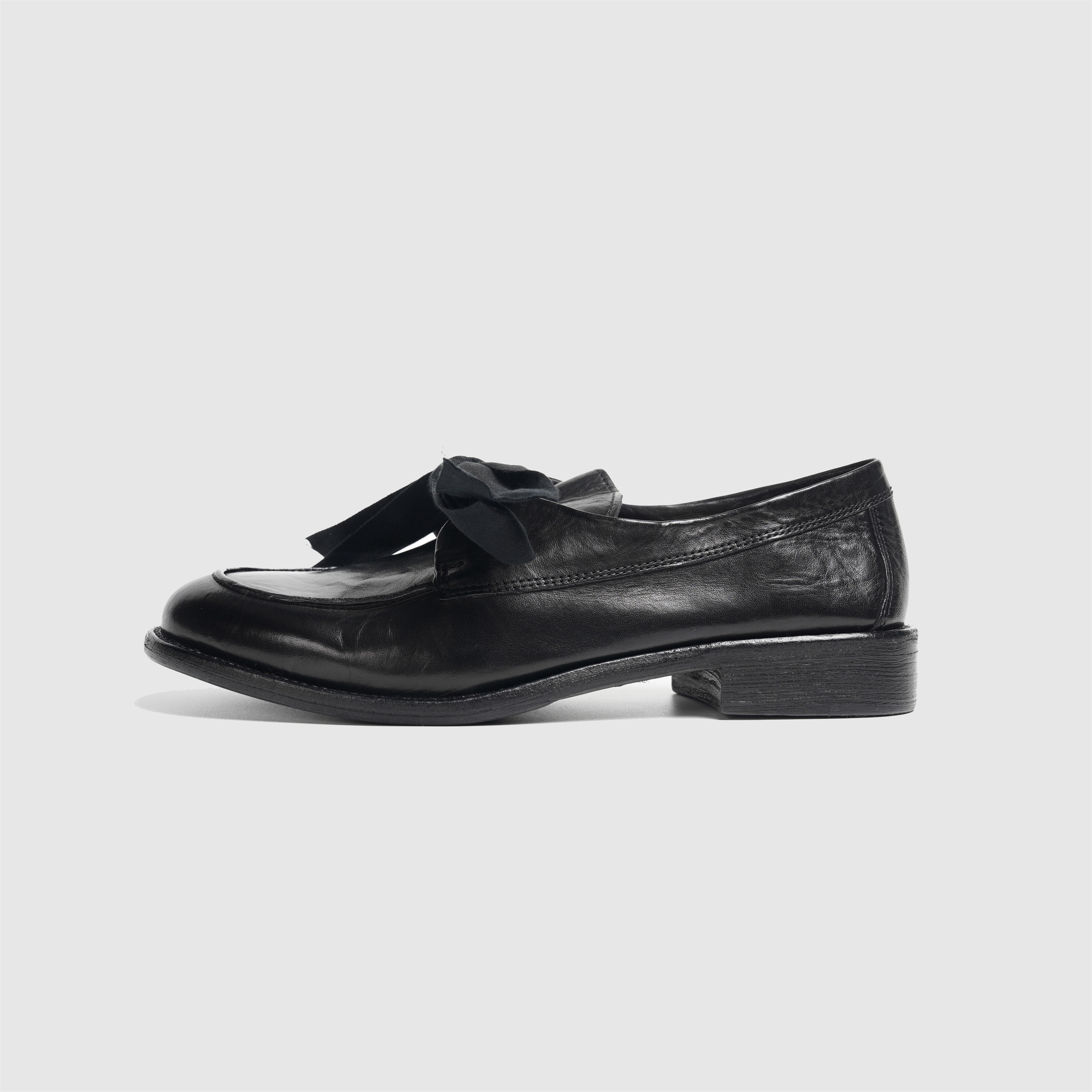 水洗马皮老钱风丝绸蝴蝶结乐福鞋