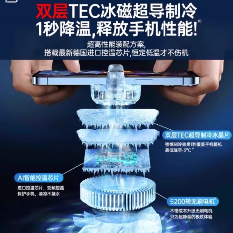 手机散热器半导体水冷降温神器制冷冰封背夹磁吸式pro风扇适用华为iPhone小米黑鲨苹果iqoo直播吃鸡游戏专用