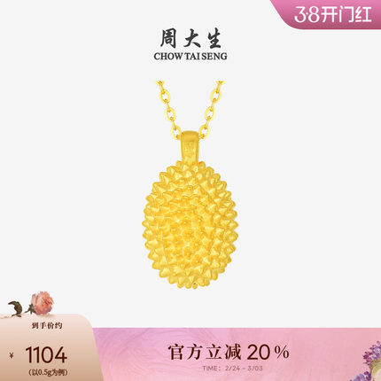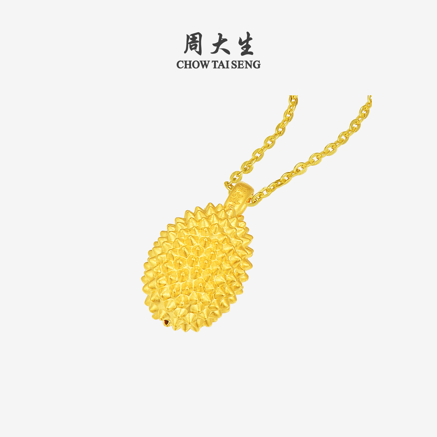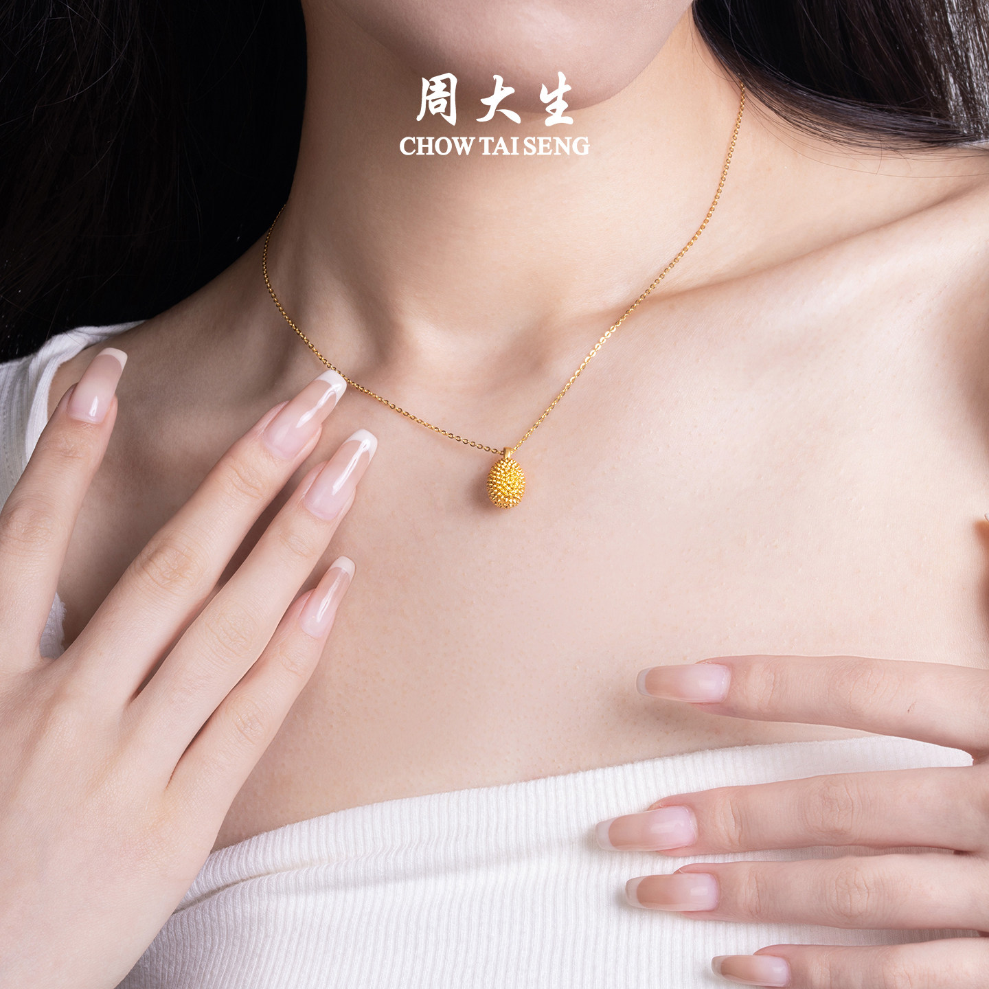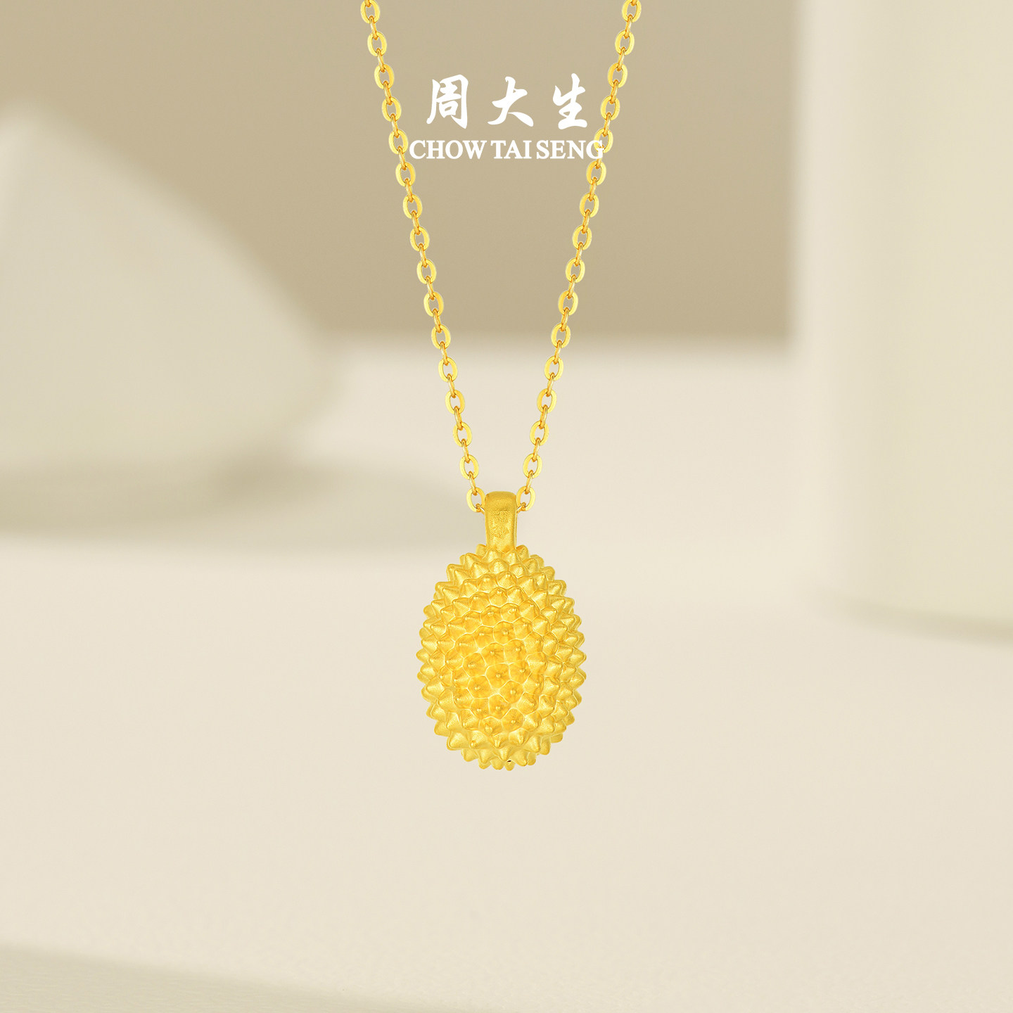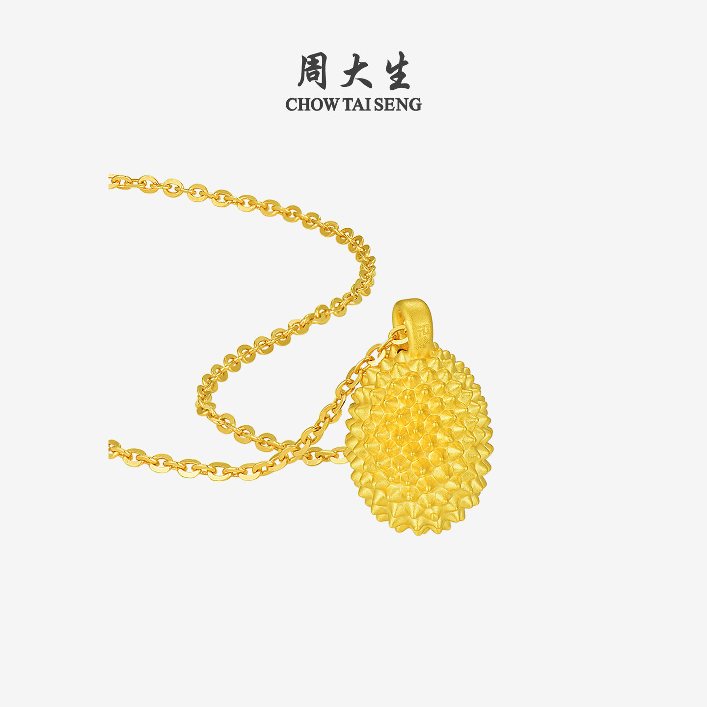 周大生黄金吊坠女款足金榴莲挂坠硬金榴莲忘返锁骨项链送女友礼物