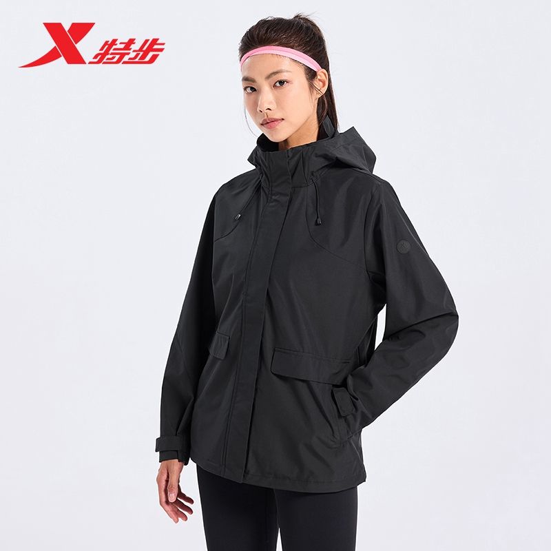 特步三防户外运动风衣外套女秋登山服冲锋衣夹克976328160083