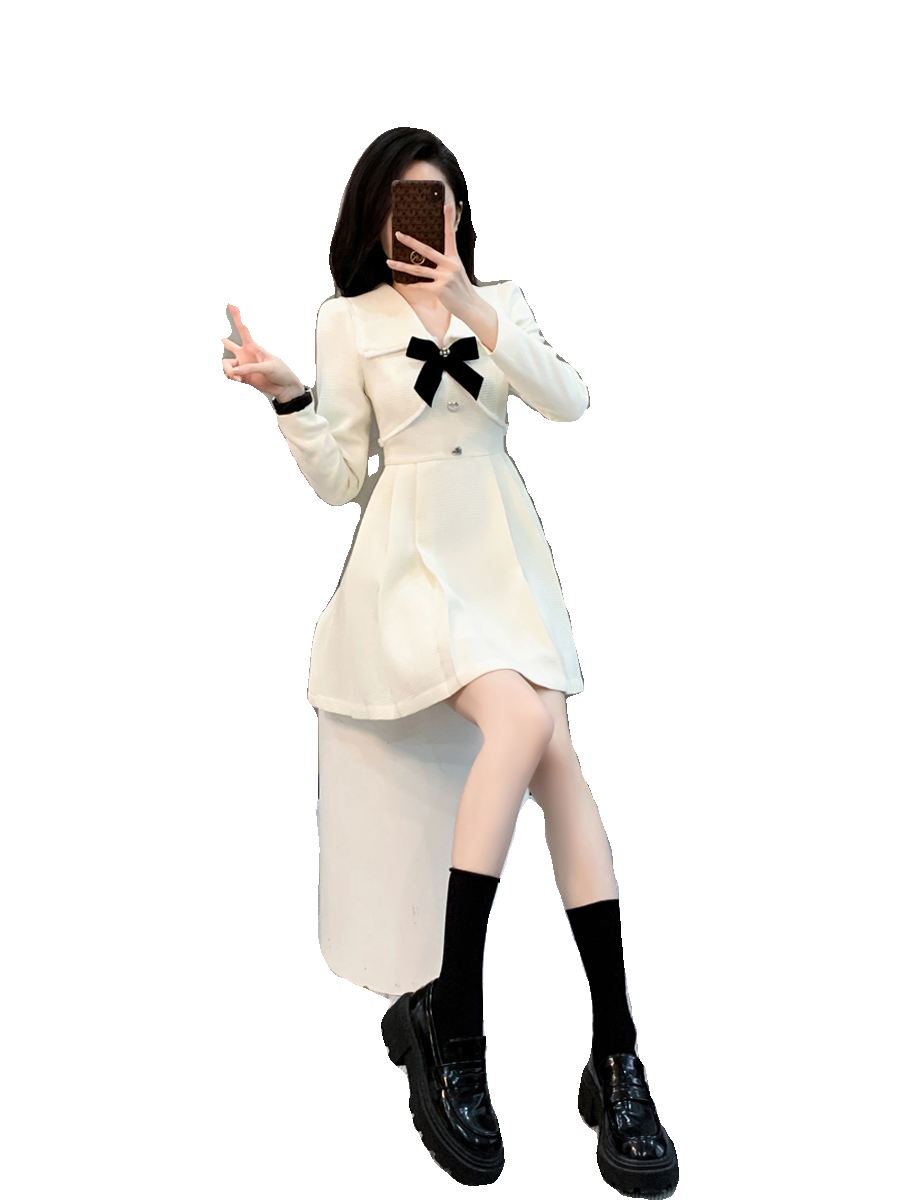 法式小香风白色连衣裙秋冬季2024新款女高级感气质名媛学院风裙子