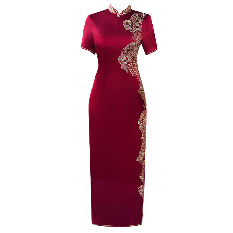 喜妈妈喜婆婆礼服丈母娘婚礼衣长款旗袍红色中国风女装婚庆连衣裙