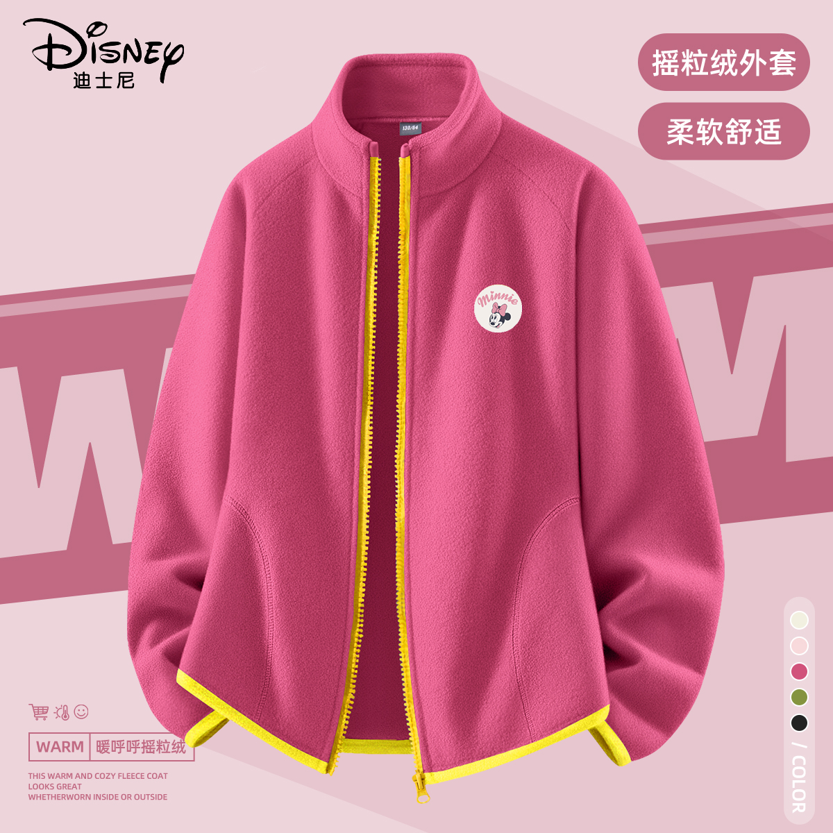 迪士尼女童秋季外套2025新款今年流行洋气女孩秋装上衣儿童摇粒绒
