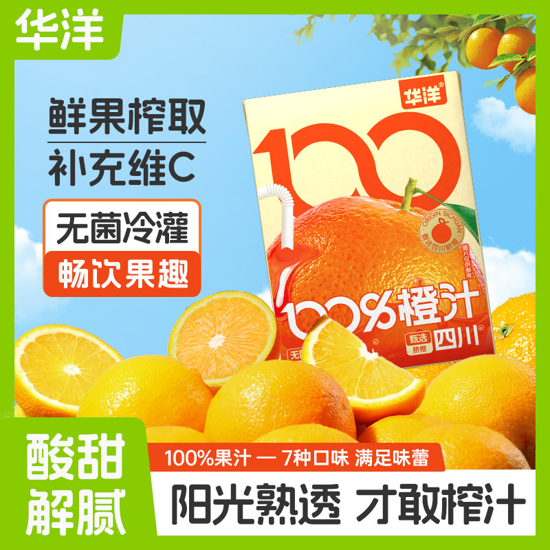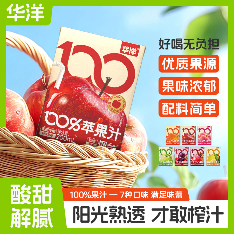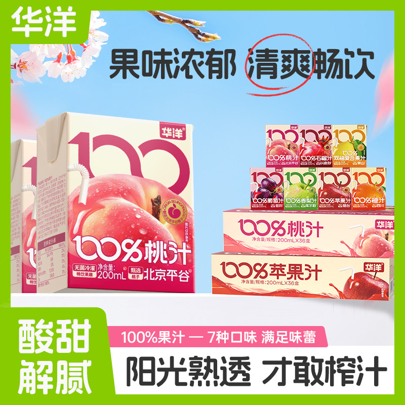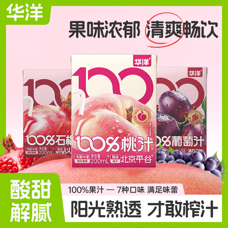 新品华洋100%果汁200ml*9盒橙汁桃汁苹果石榴葡萄汁整箱