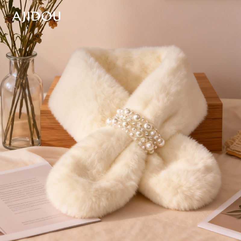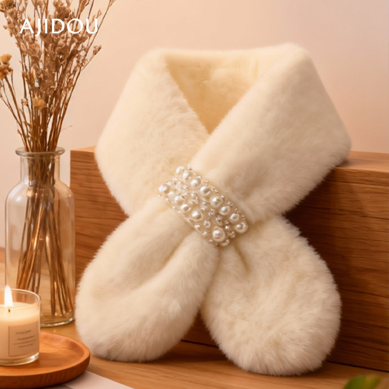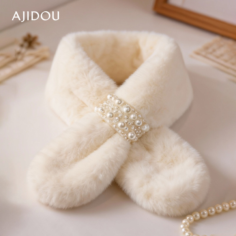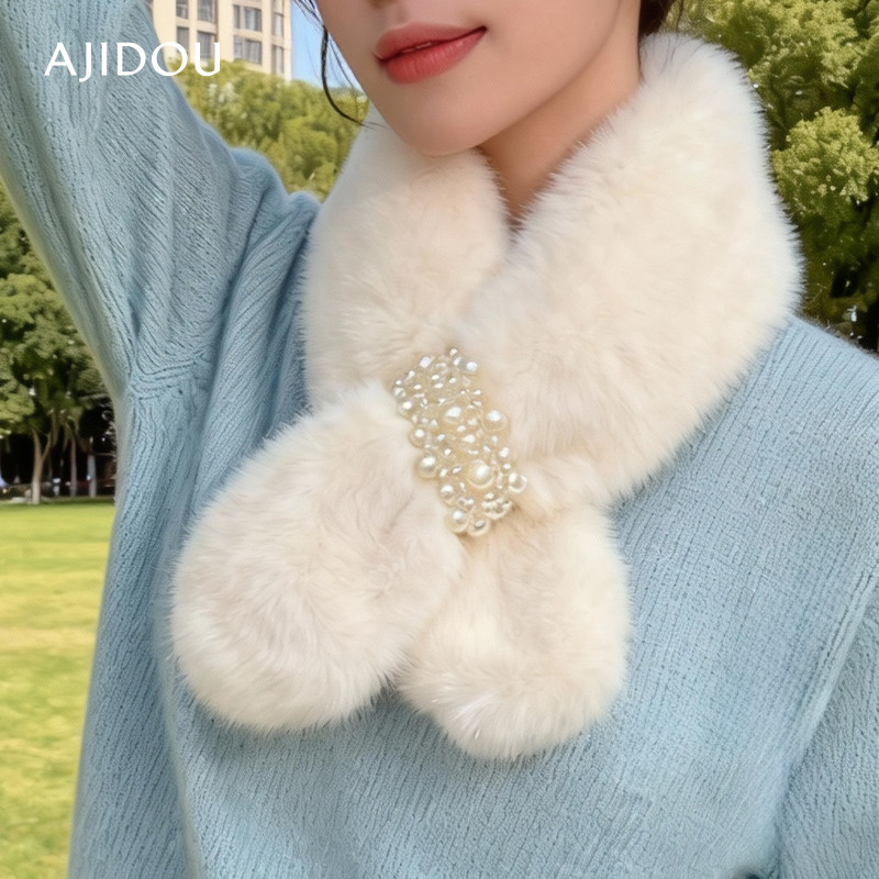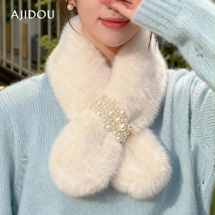 AJIDOU阿吉豆围巾毛毛领围脖冬季护颈百搭可爱少女仿獭兔毛绒围脖