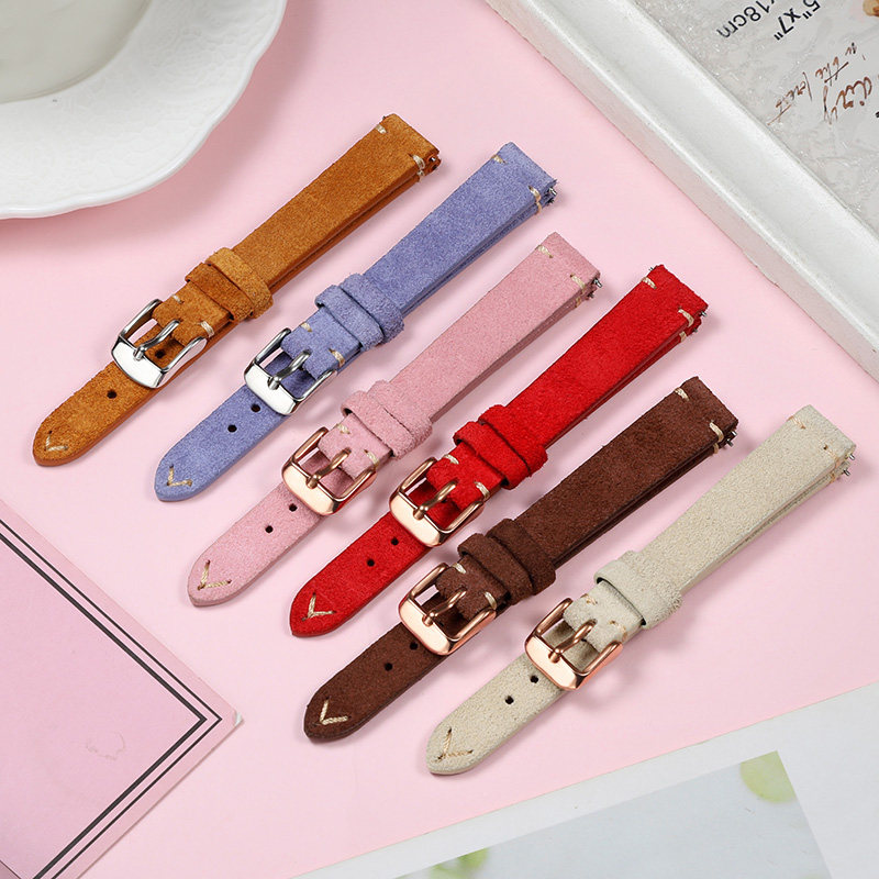 紫色手表带女真皮带适配华为GT4/5卡西欧阿玛尼天梭dw飞亚达天王
