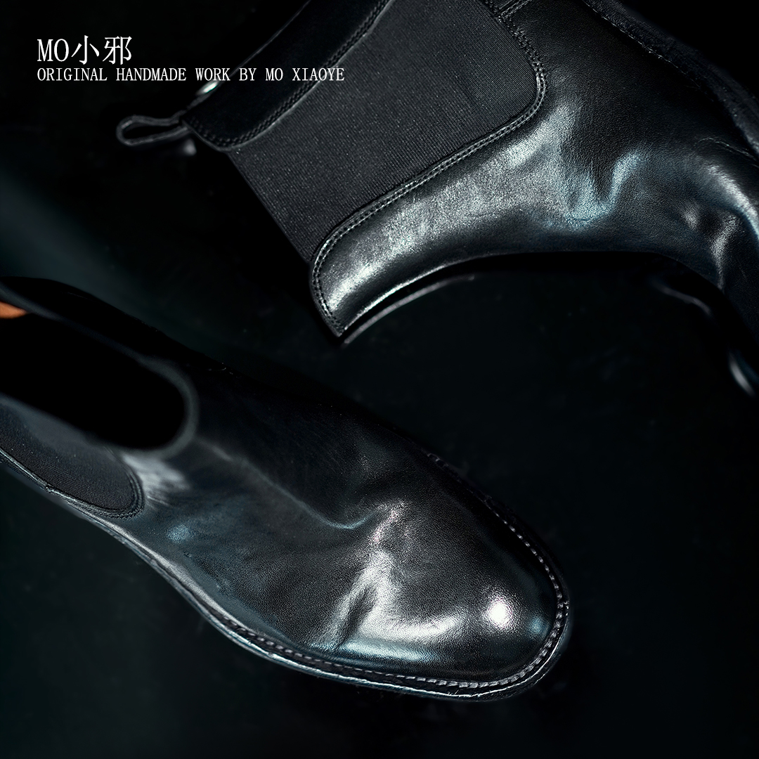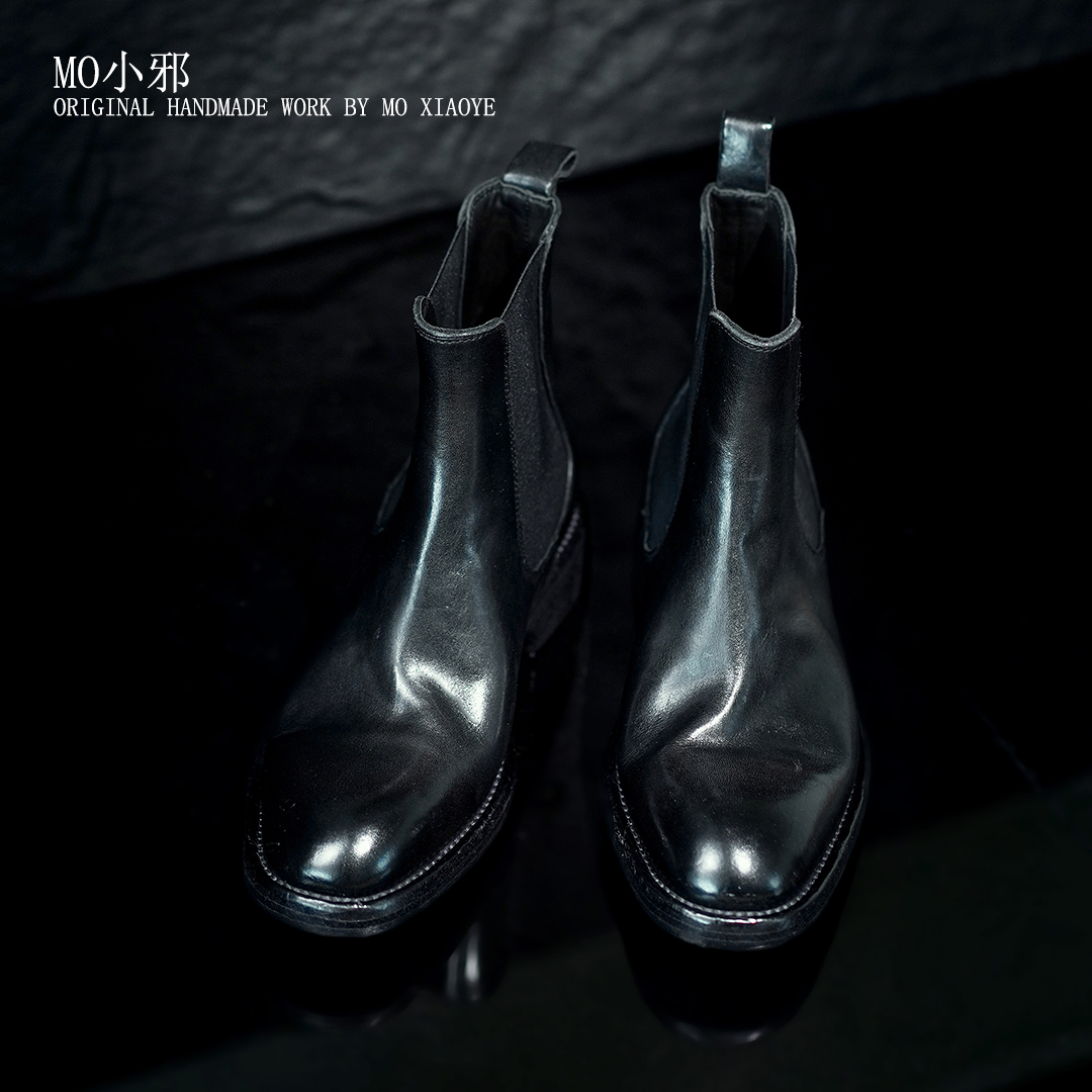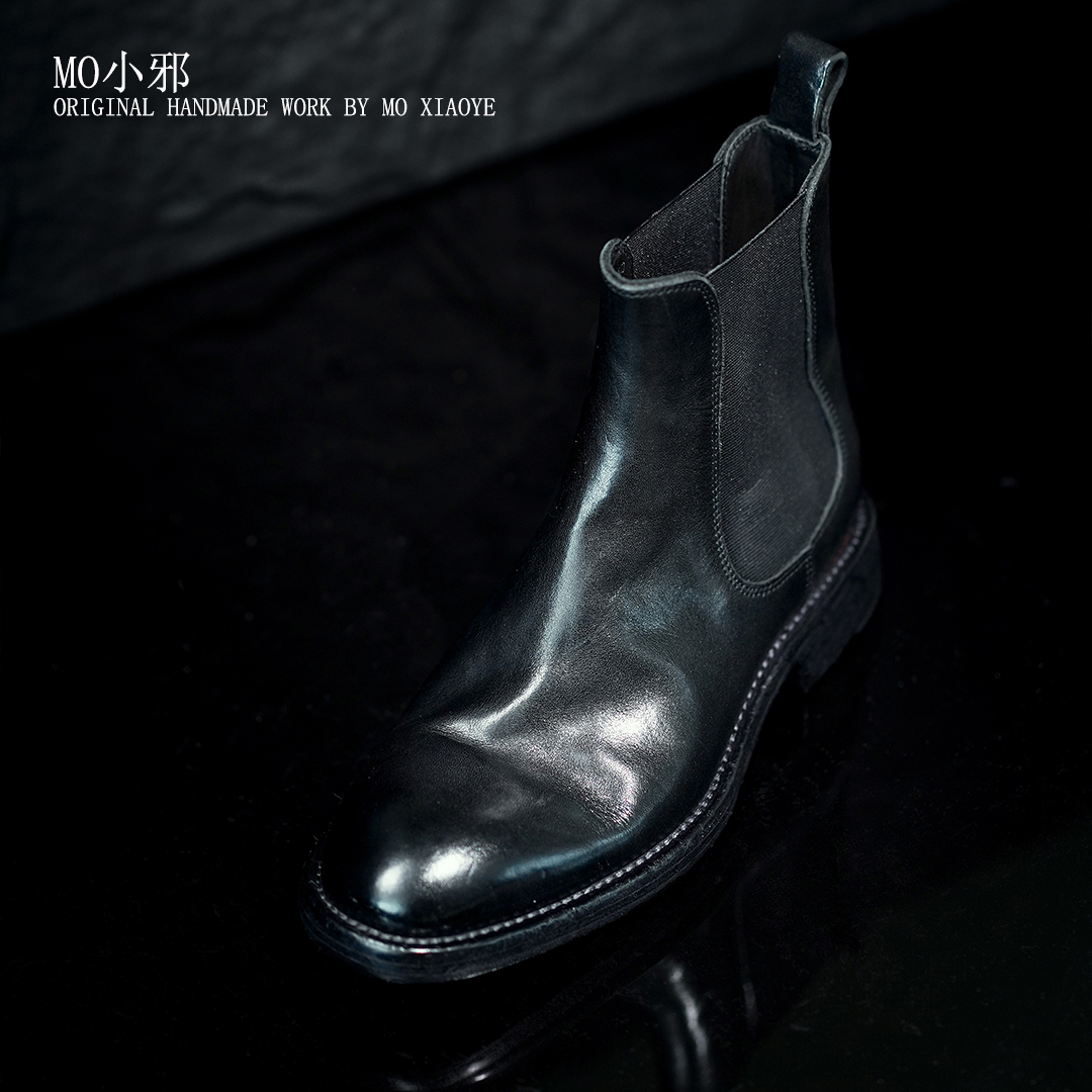 MO小邪' 手工原创水洗马皮短靴切尔西秋时装靴百搭真皮底靴子女鞋