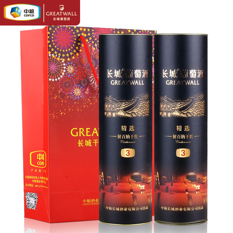 中粮长城精选3彩标解百纳筒装干红葡萄酒 国货红酒中秋礼品2瓶装