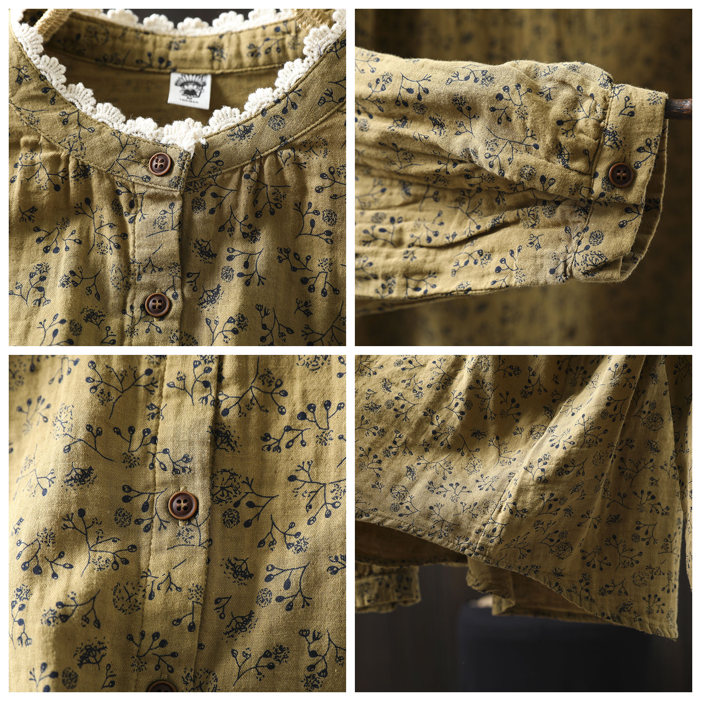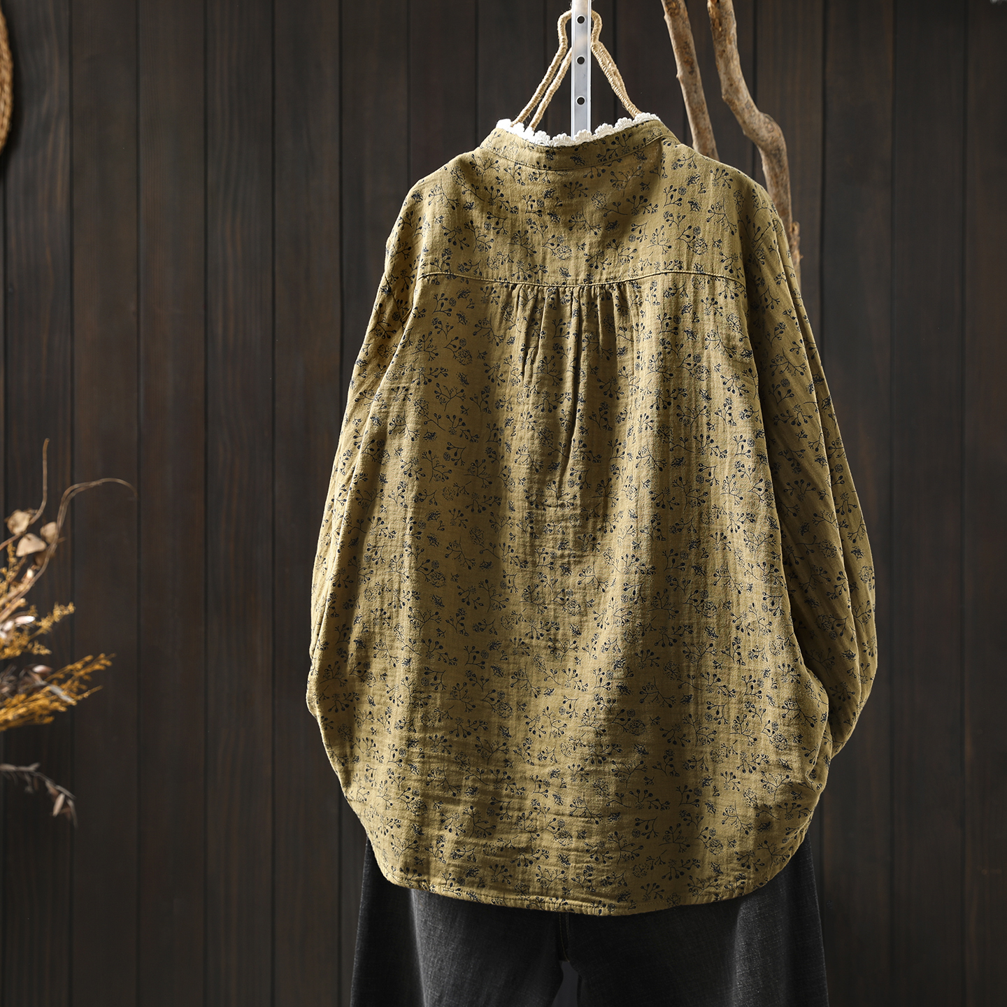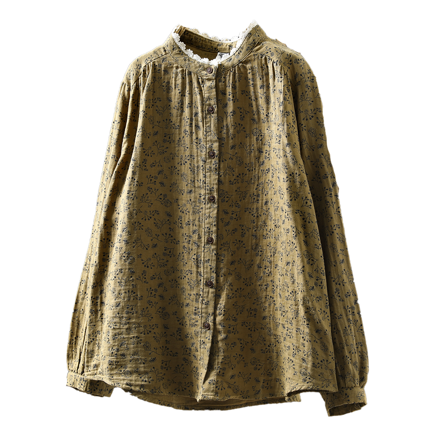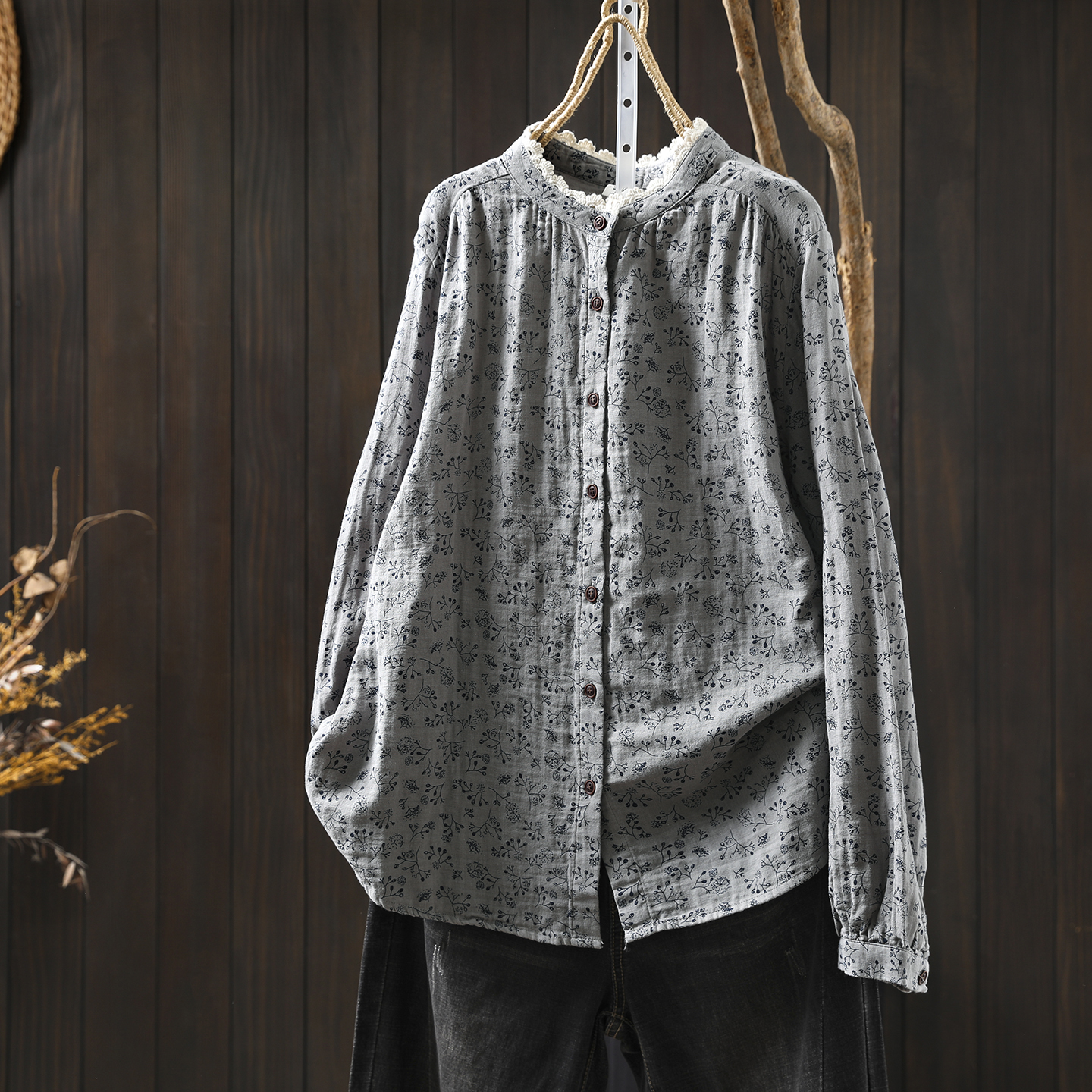 独特超好看单穿衬衫女2025秋新款双层棉纱花边领复古碎花文艺衬衣