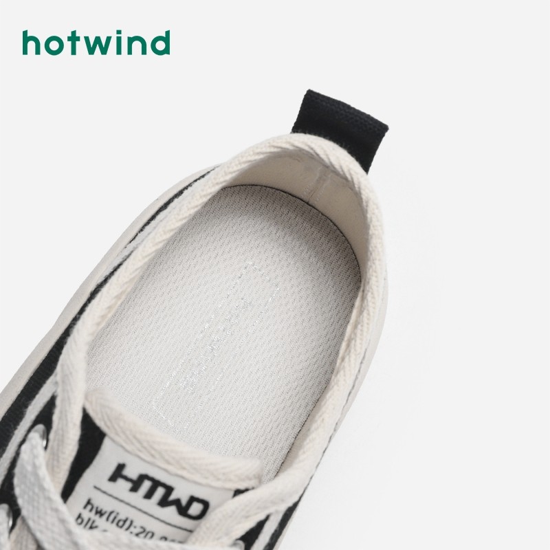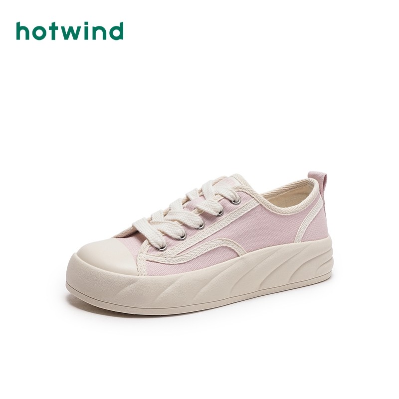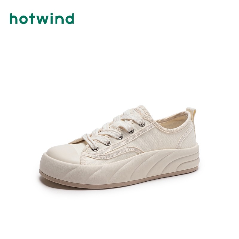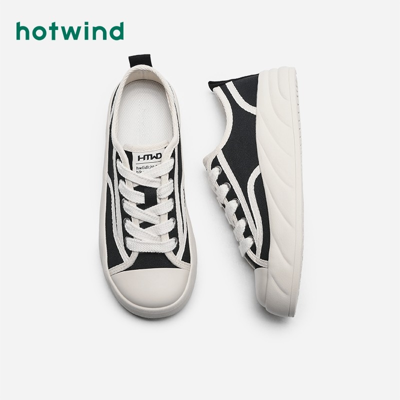 热风秋季新款女士时尚系带休闲鞋户外潮流小白鞋运动帆布鞋