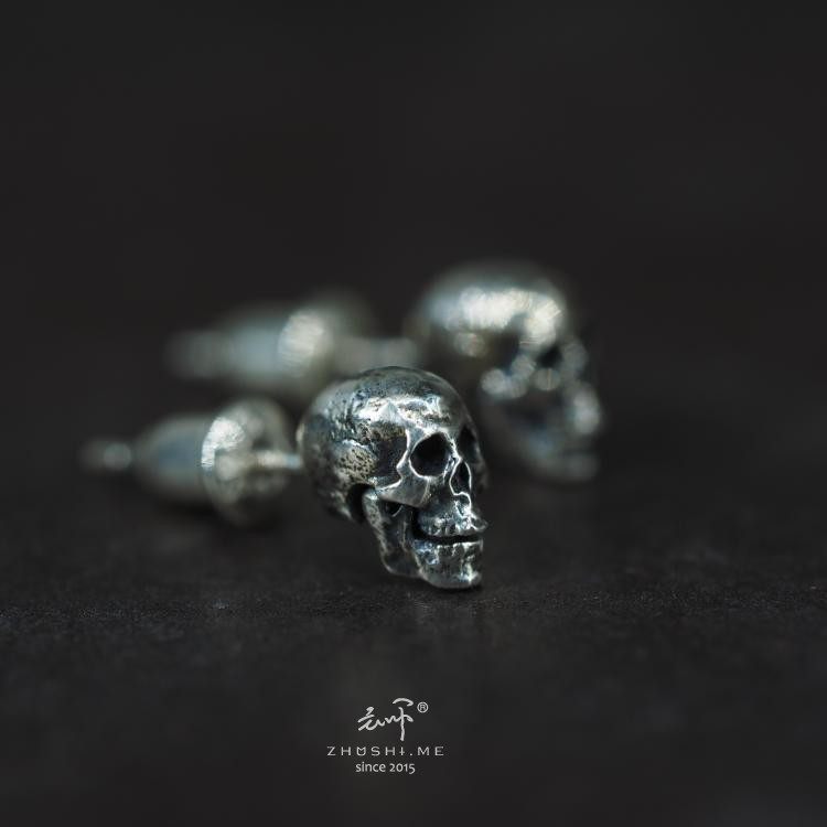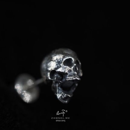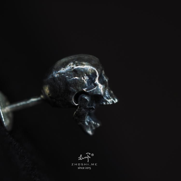 主师原创全新纯银嘴巴可活动骷髅s925耳钉个性男女暗黑防过敏耳坠