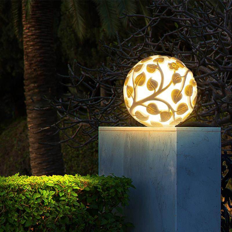 太阳能柱头灯户外防水圆球灯别墅庭院围墙灯镂空球形灯大门柱子灯