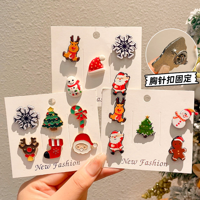 圣诞老人节日气氛装饰可爱卡通胸针金属徽章毛衣别针纽扣衣服配饰