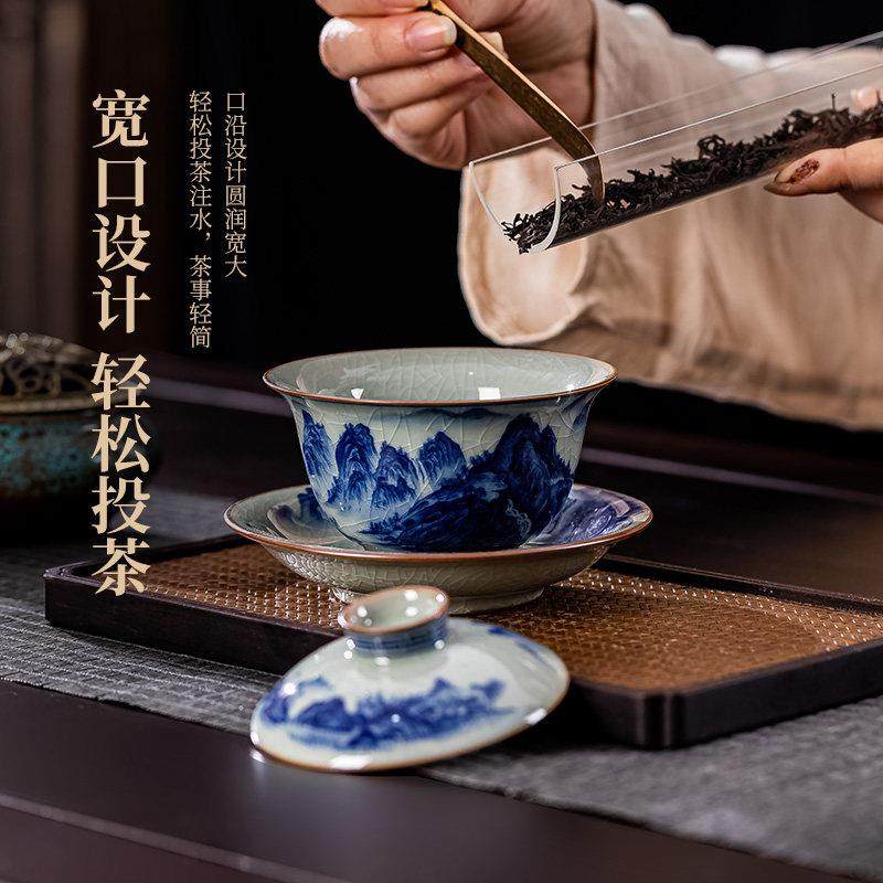 景德镇青花瓷盖碗茶杯功夫茶具小套装陶瓷泡茶碗家用办公会客整套