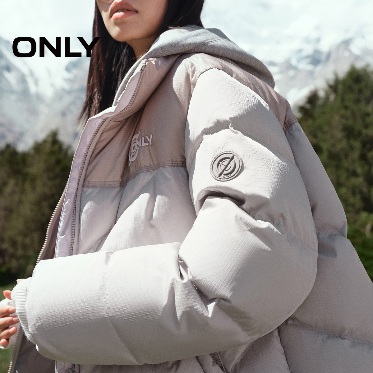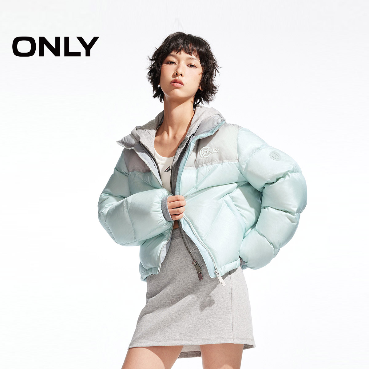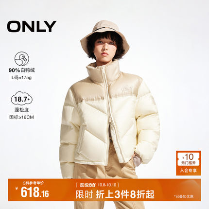ONLY冬季90白鸭绒撞色拼接短款立领羽绒服女|124423018