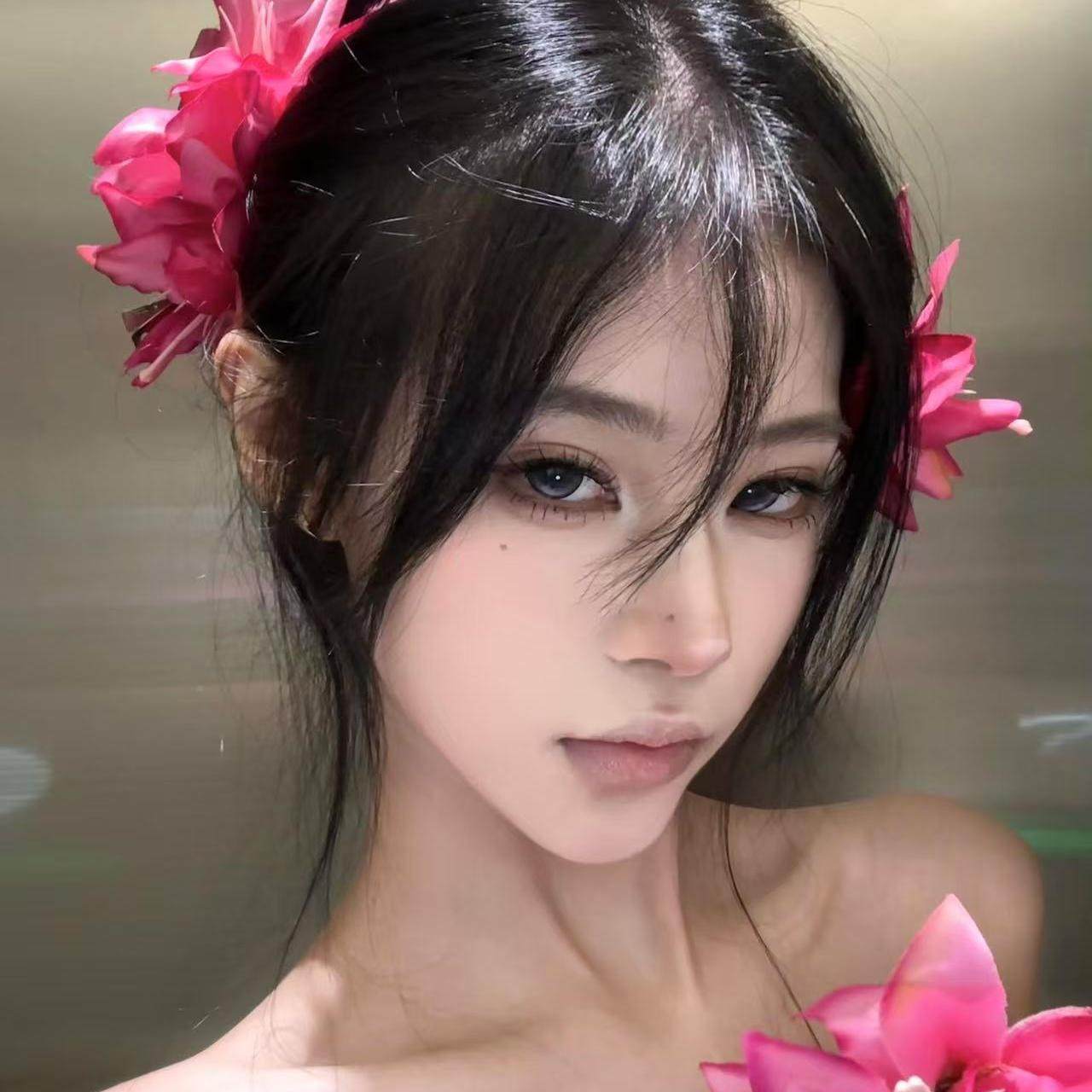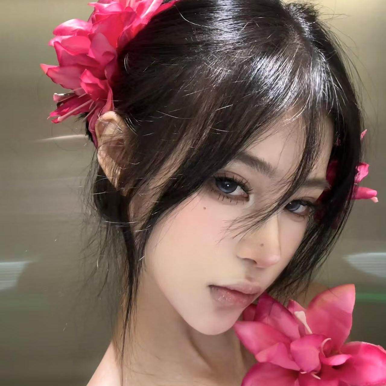 明艳玫红色百合花朵发夹复古唯美博主同款氛围感拍摄道具侧边花夹