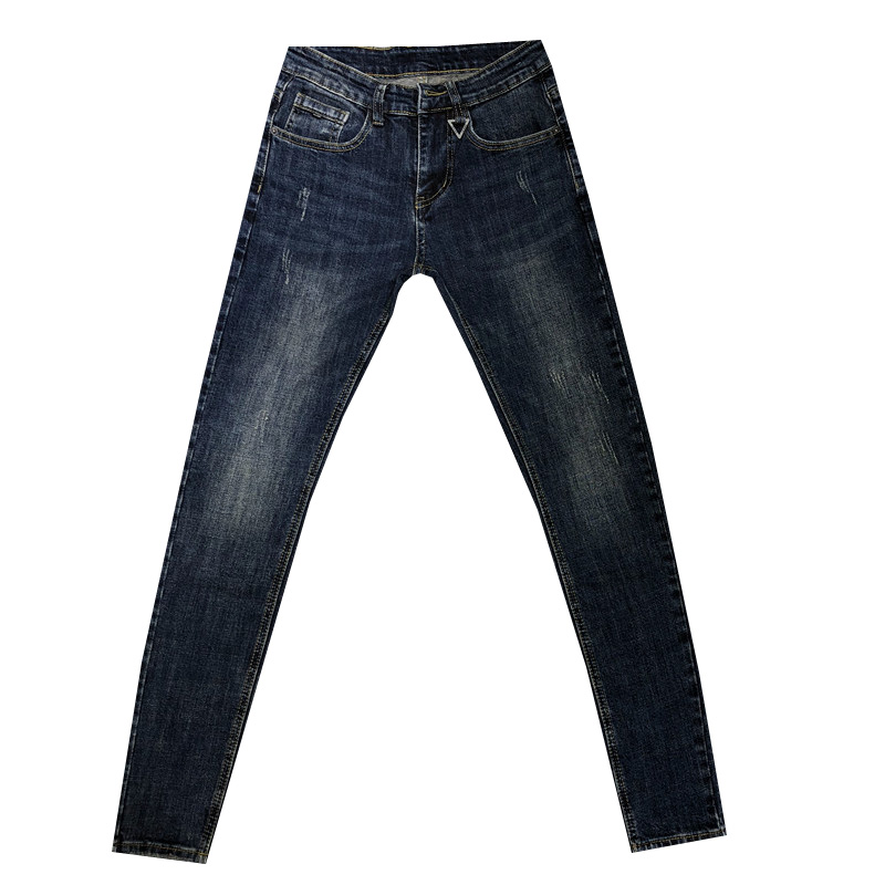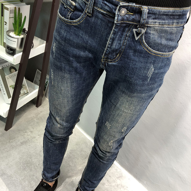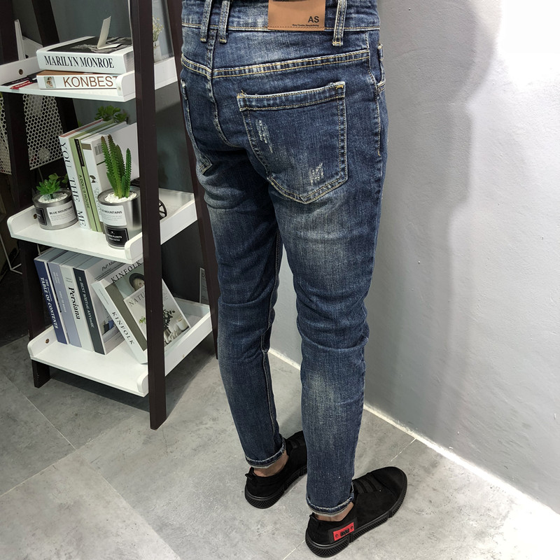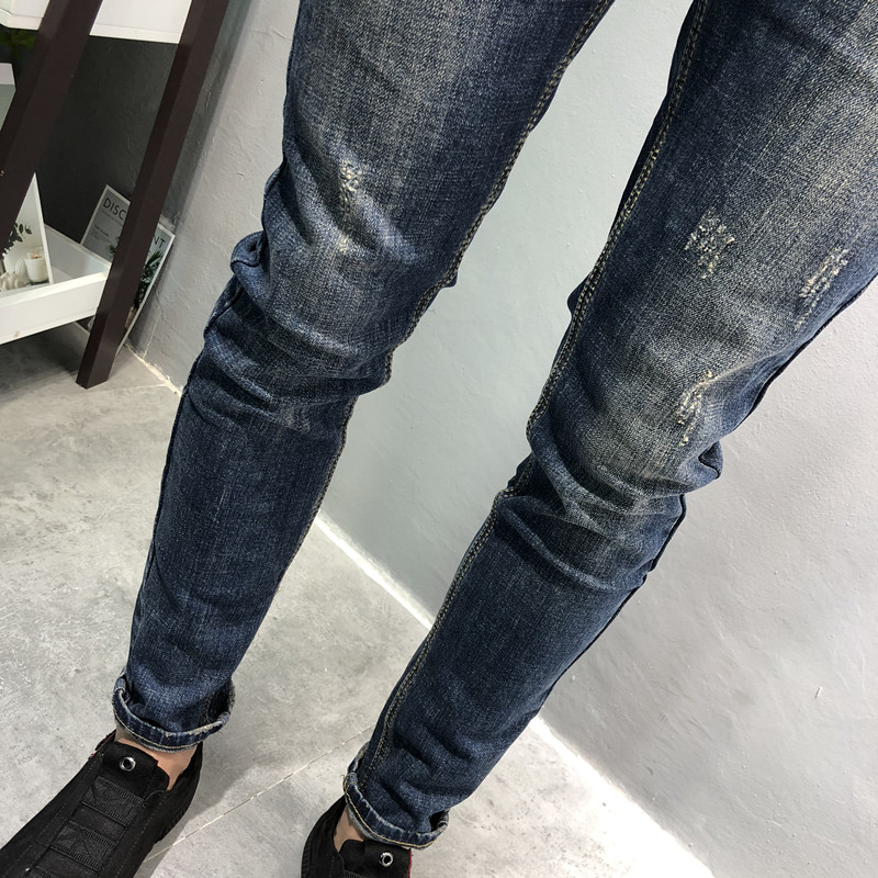 复古做旧深蓝猫须牛仔裤 潮男秋冬新韩版修身小脚长裤社会人青年
