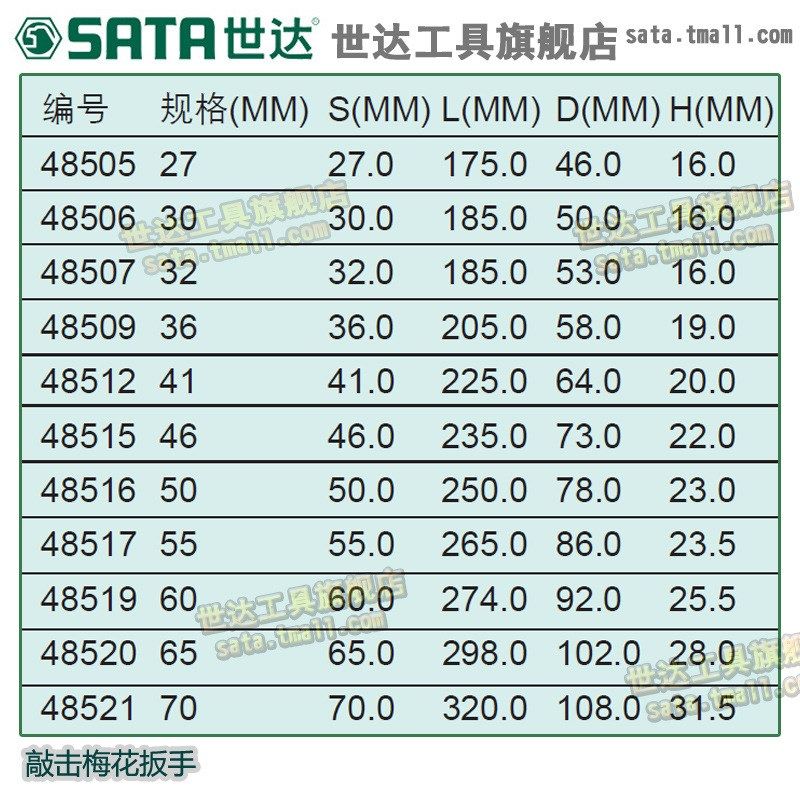 世达五金工具快速敲击梅花扳手单头套筒扳手扳子27-120mm48505-21