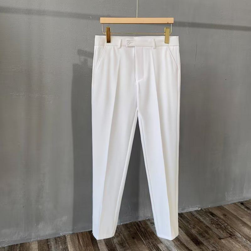 垂感夏季九分休闲裤男士直筒高端薄款修身长裤子商务正装小脚西裤