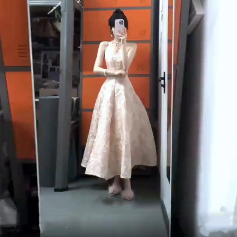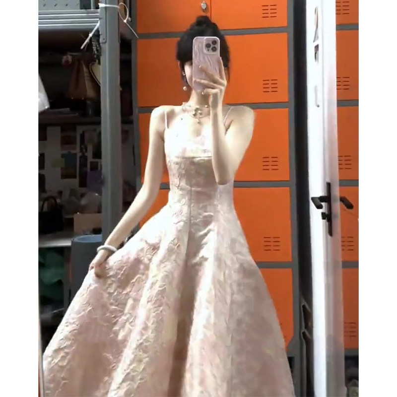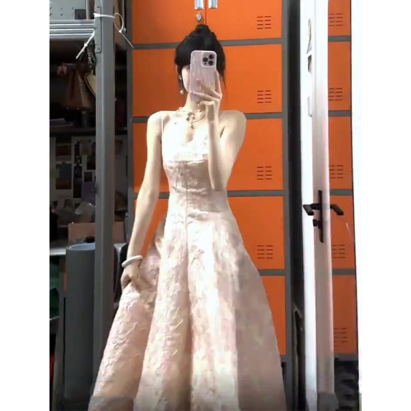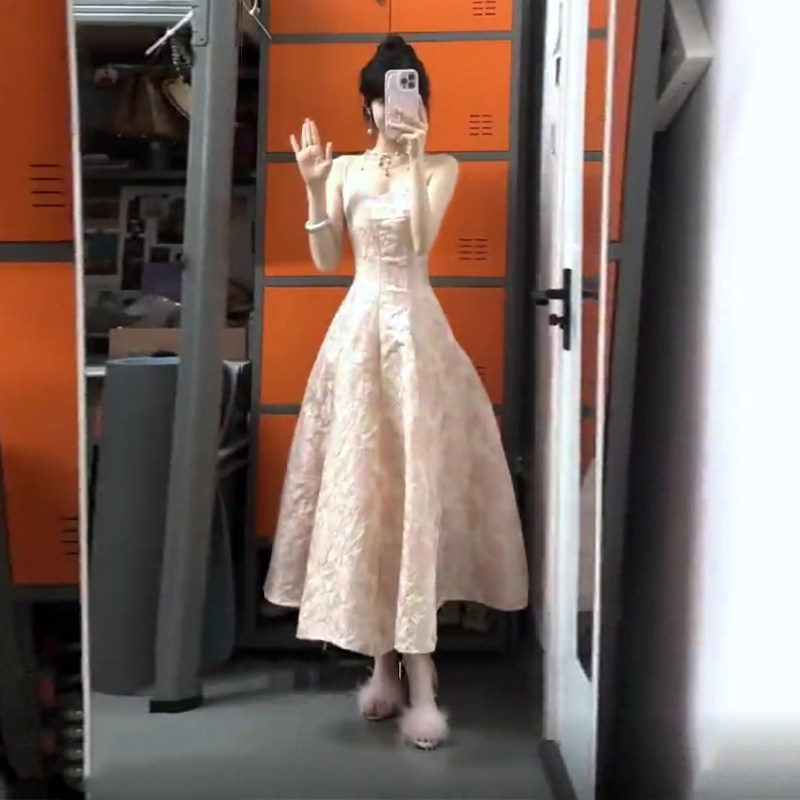 富家千金感法式吊带连衣裙高端精致提花收腰a字公主裙生日礼服裙