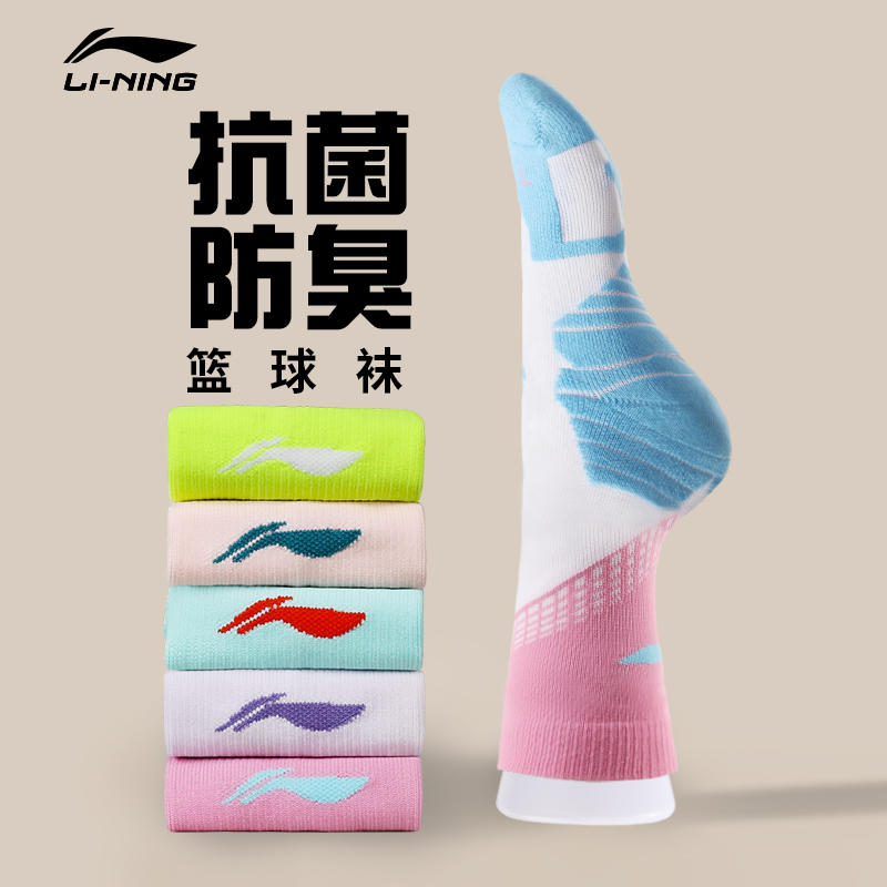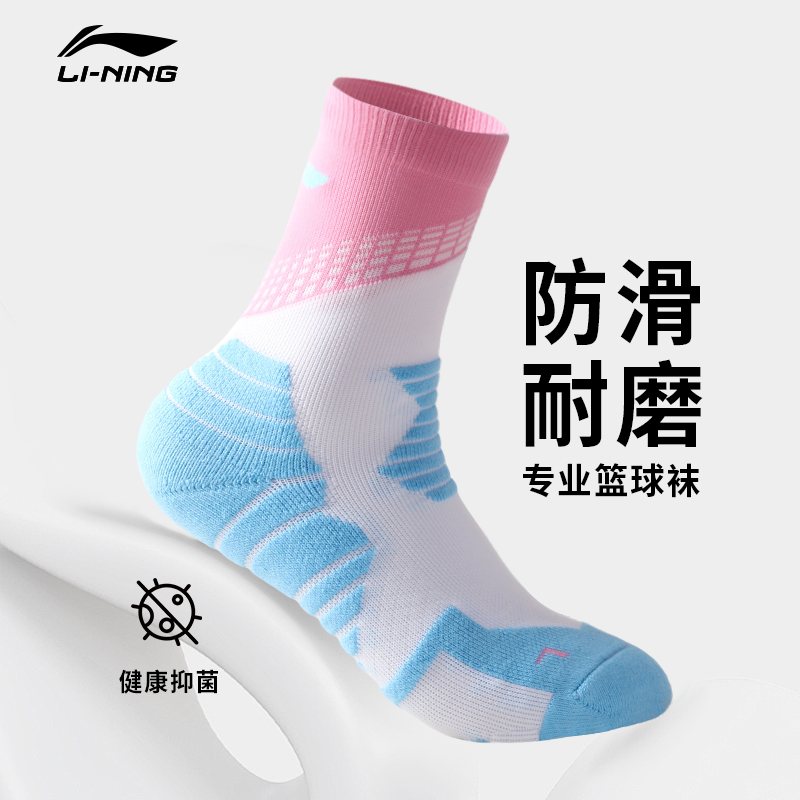 李宁篮球袜子男cba实战女加厚毛巾底学生中筒精英运动袜防滑防臭