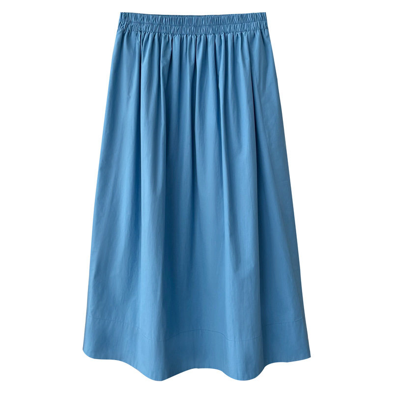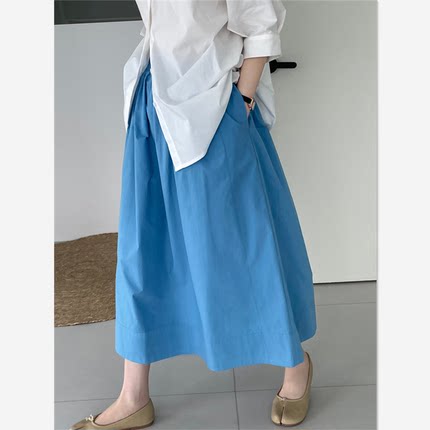 春夏秋季松紧腰纯蓝色半身裙女伞裙遮肉宽松休闲显瘦A字纯棉裙子