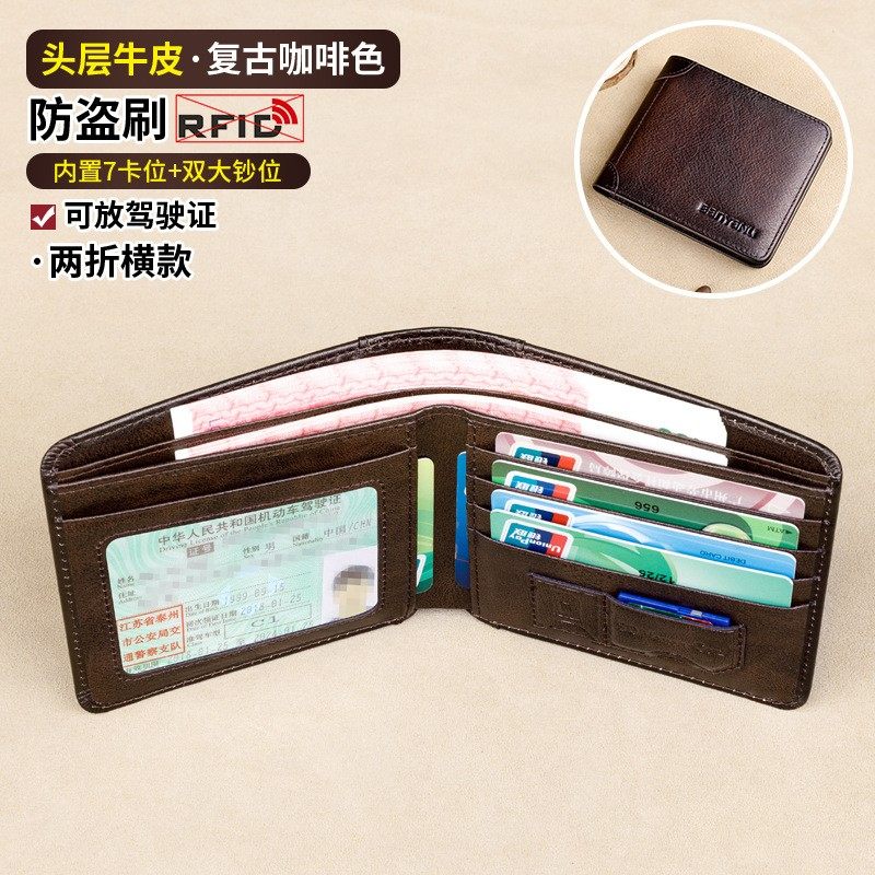 钱包男短款真皮超薄新款简约复古大容量软牛皮横款钱夹驾驶证皮夹