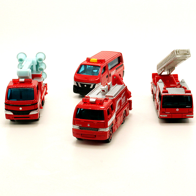 TOMY多美卡tomica合金小汽车模型玩具云梯消防照明指挥车四车套组