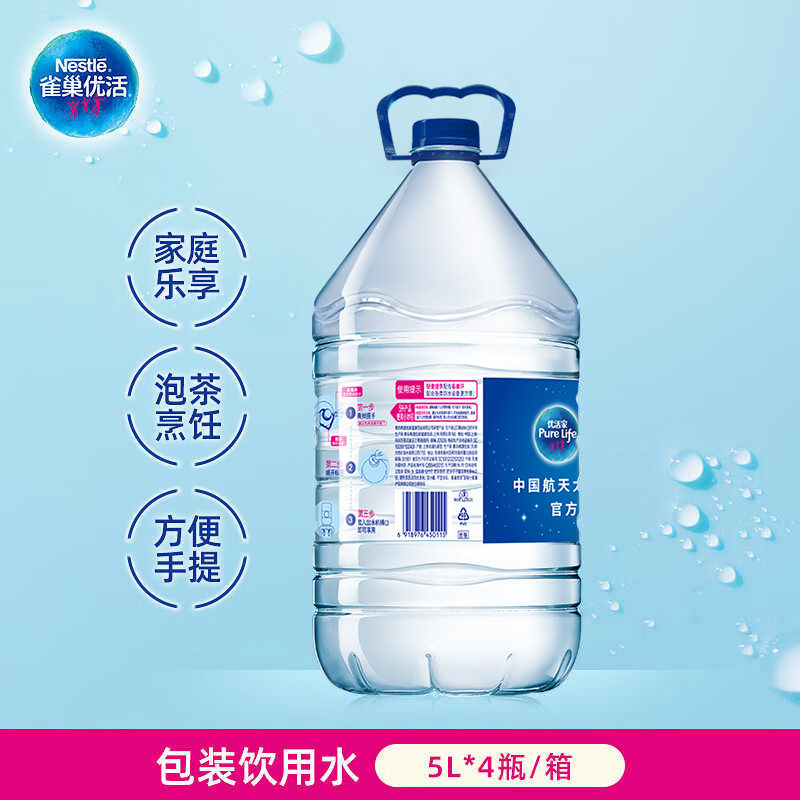 优活家饮用非矿泉水5L*4瓶整箱大桶家庭办公室泡茶纯净水雀巢优活