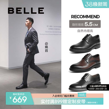 百丽男士真皮鞋内增高礼盒款商务正装三接头新郎结婚鞋子8AA01CM4