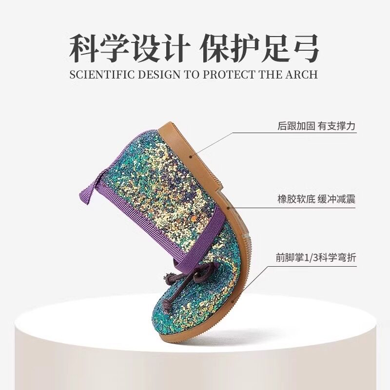 真皮女童儿童水晶公主鞋