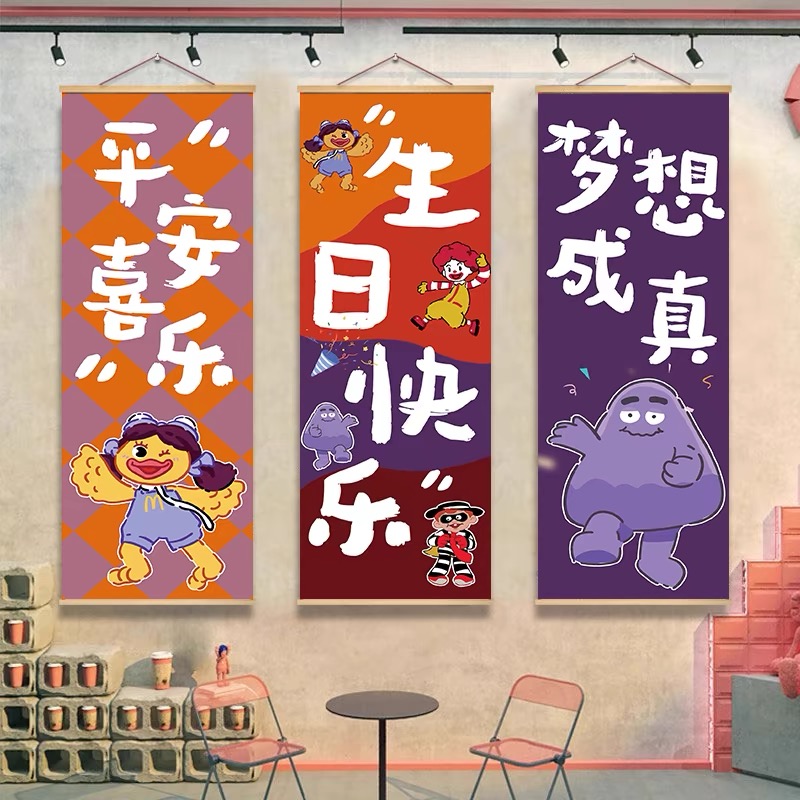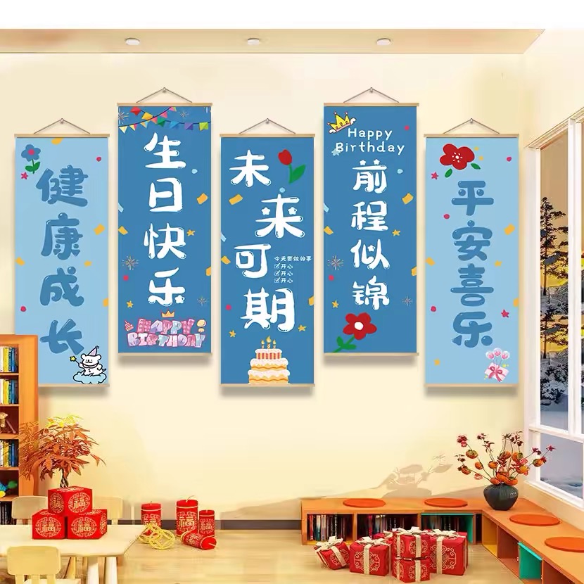 生日快乐场景墙面装饰挂画儿童派对客厅房间壁纸餐饮店包厢海报布