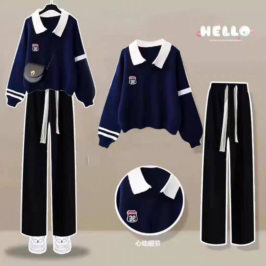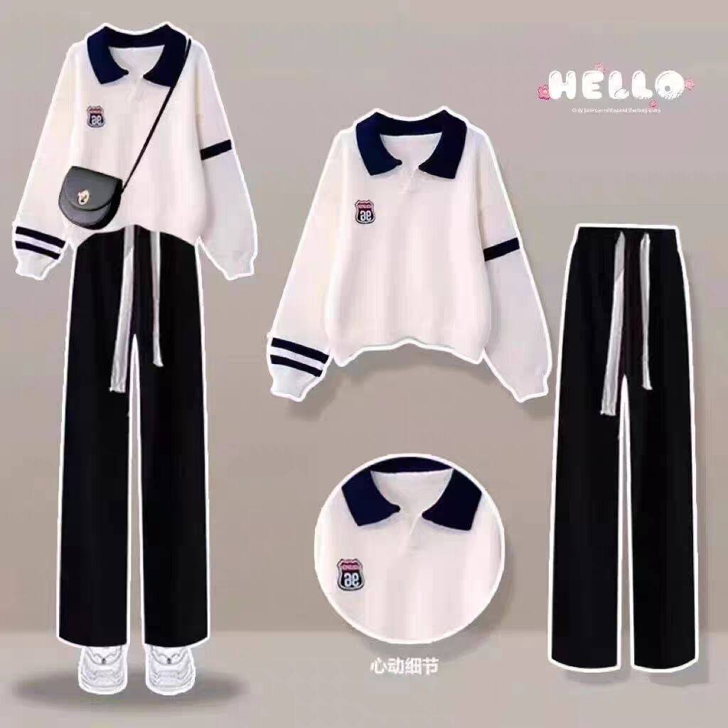 中大童秋季新款女装套装学生卫衣女2024初中生春装上衣洋气两件套