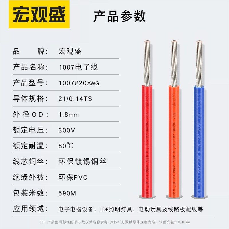 灯条连接线1007-20号电子线纯铜镀锡导体21/0.14TS电路板连接导线