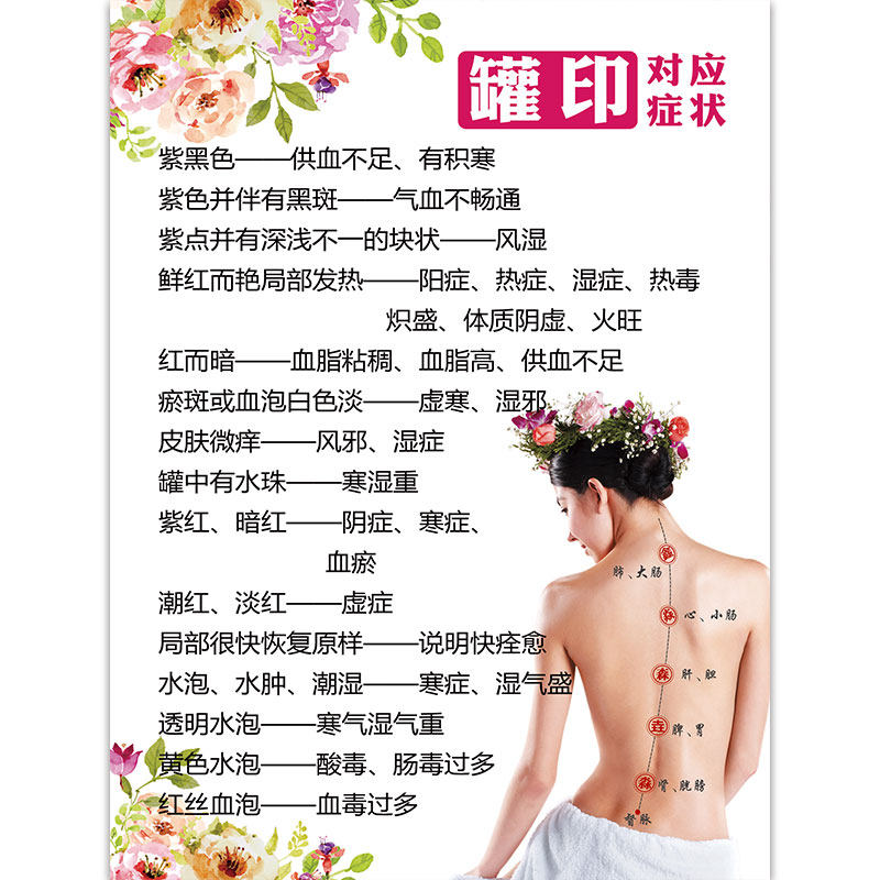 拔罐罐印对应症状海报挂画中医养生馆推拿拔罐针灸按摩宣传装饰画