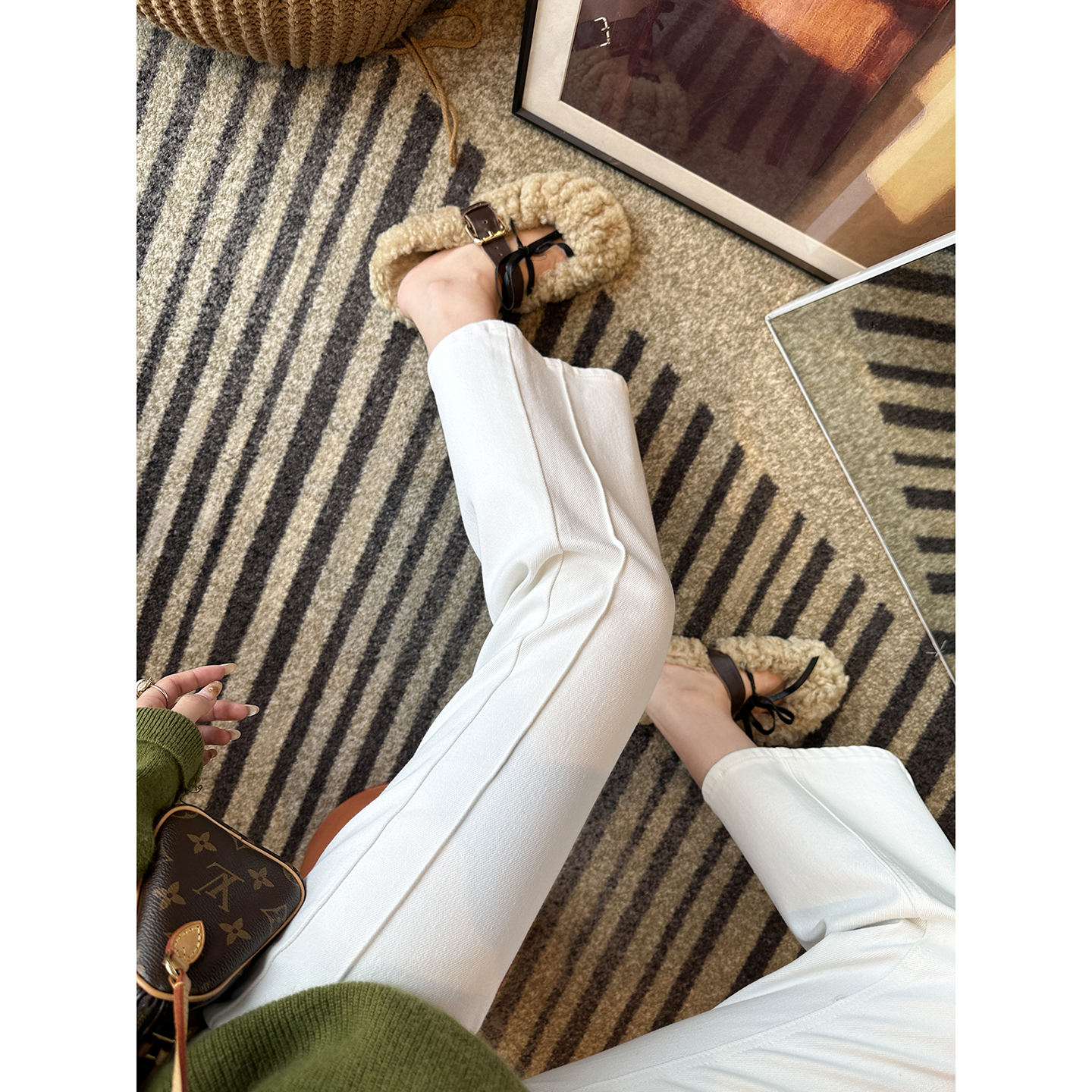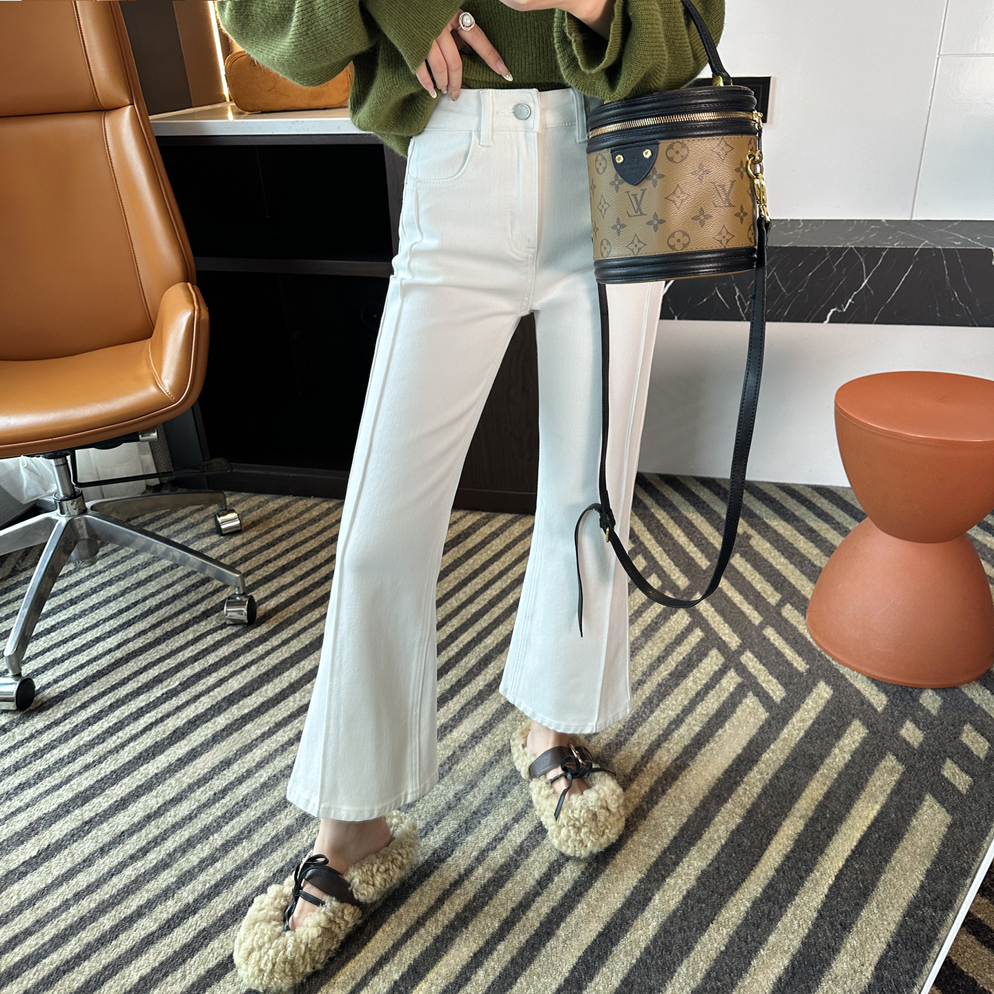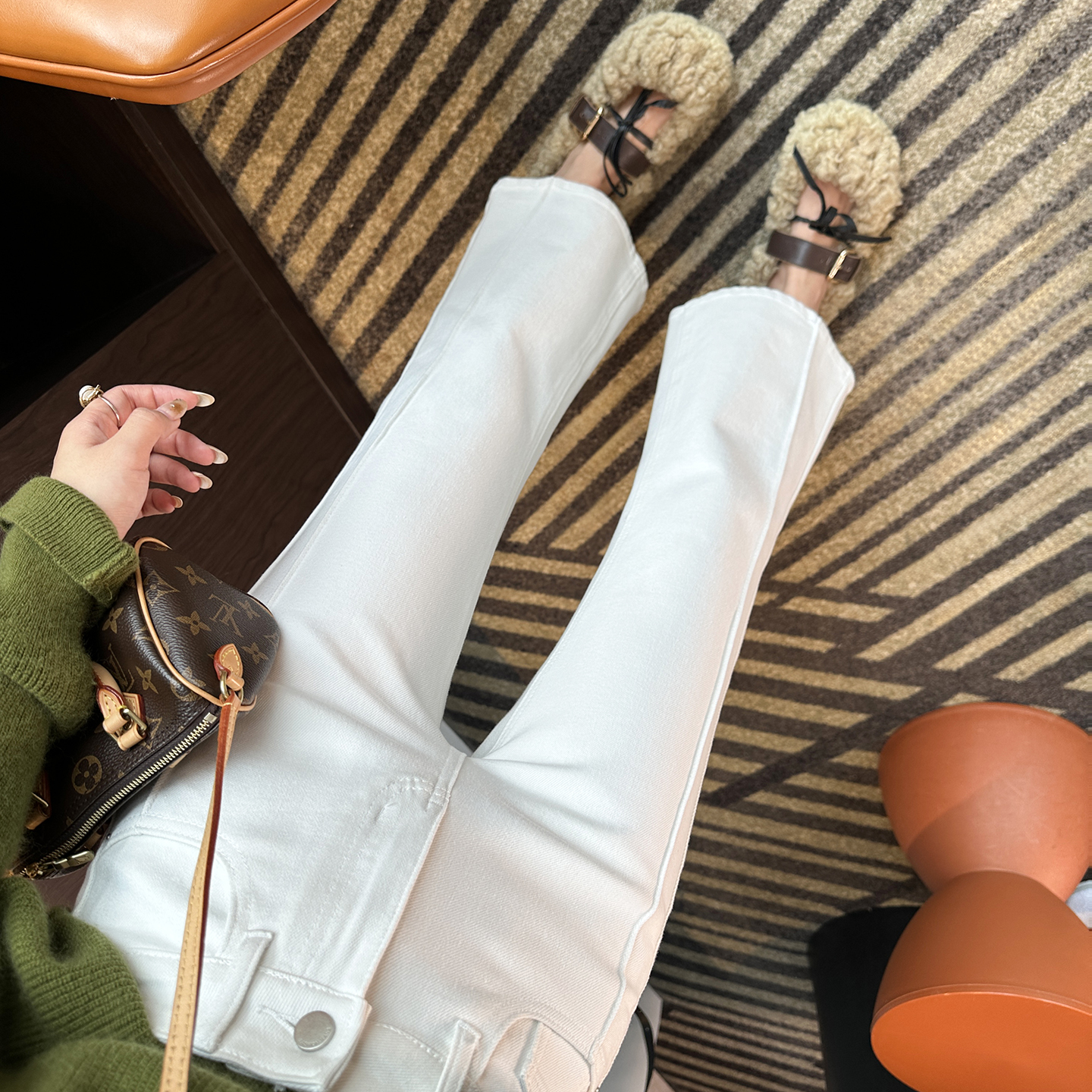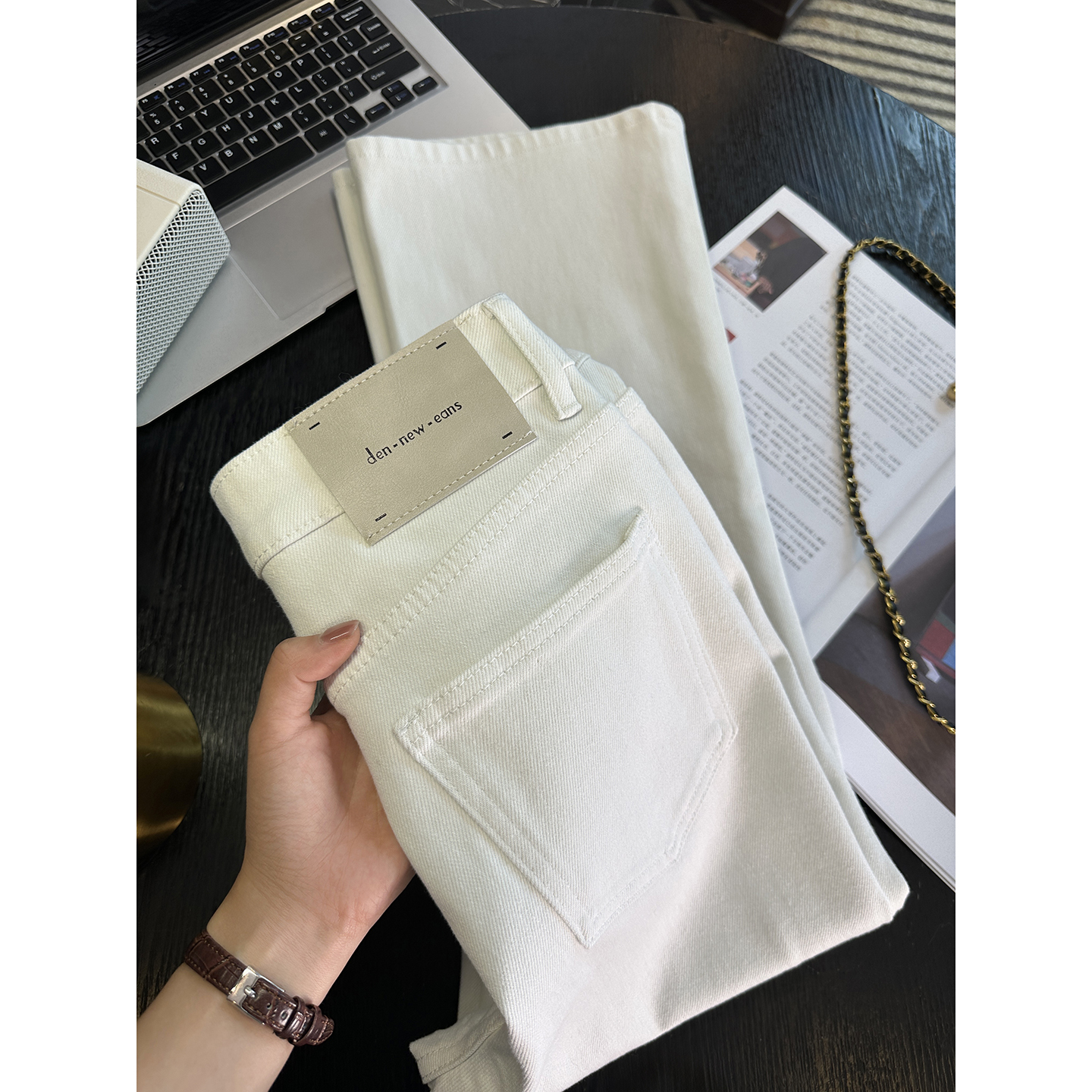 直腿比例 白色修身微喇叭牛仔裤女2025新款秋季高腰弹力九分裤子