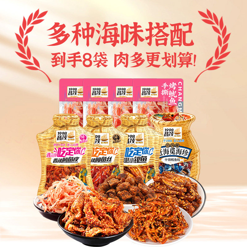 【直播专属】昌茂海鲜零食鱿鱼丝小银鱼鳕鱼即食组合零食
