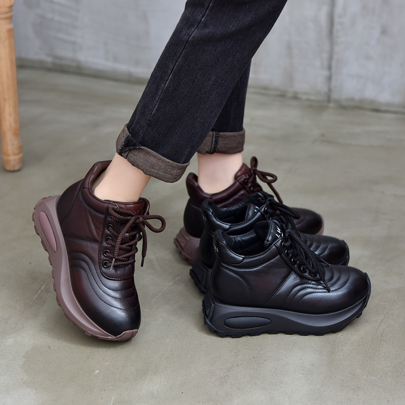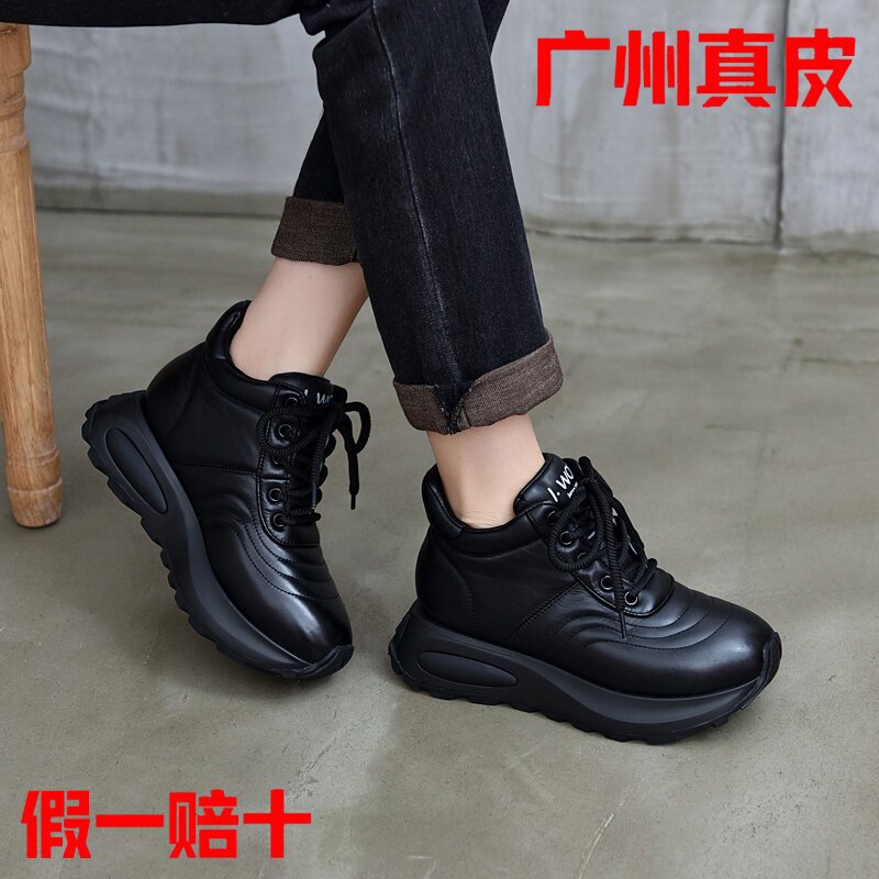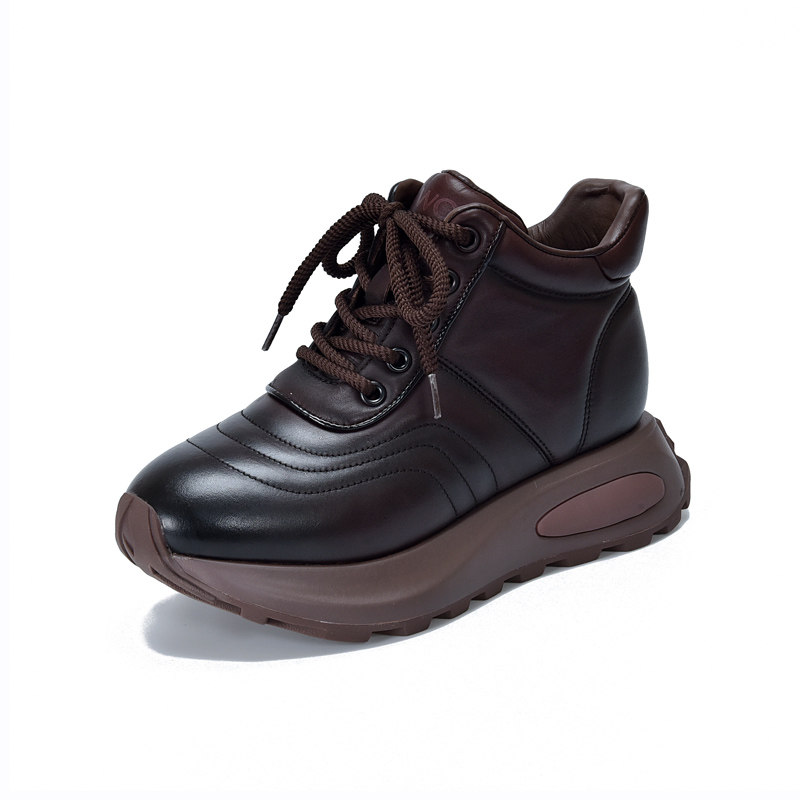 2025秋冬新款头层牛皮厚底休闲鞋英伦复古风增高单靴系带真皮短靴