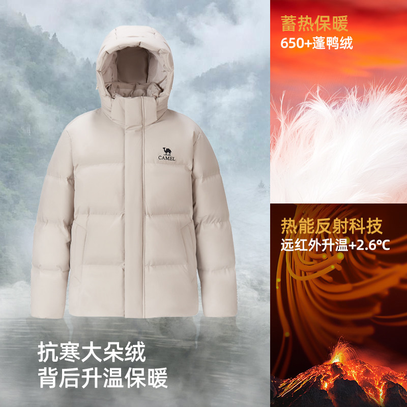 Camel/骆驼羽绒服男2025秋冬新款面包服运动工装百搭短款连帽羽绒