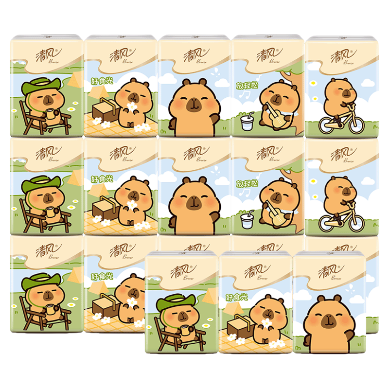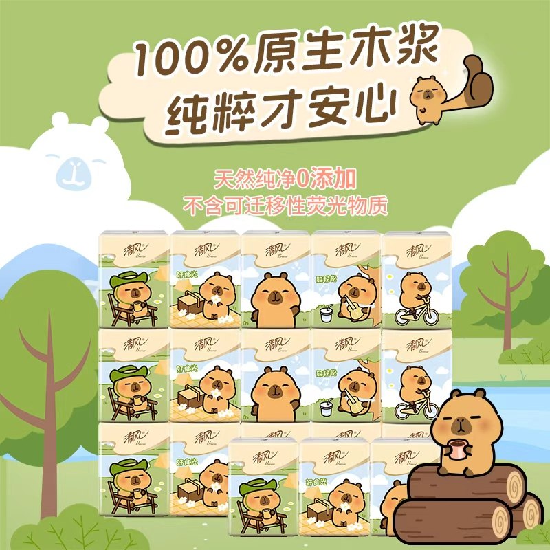 清风卡皮巴拉手帕纸4层加厚6片18包